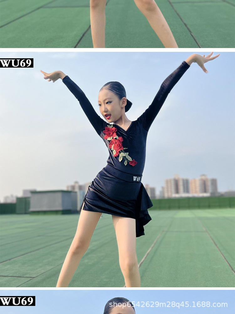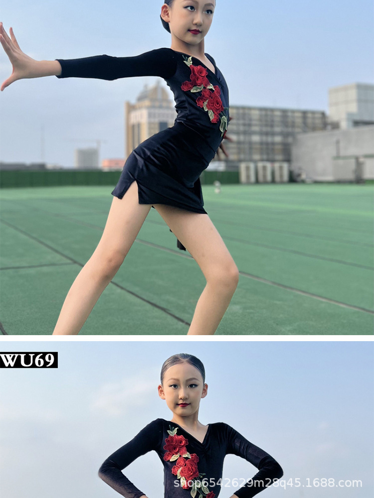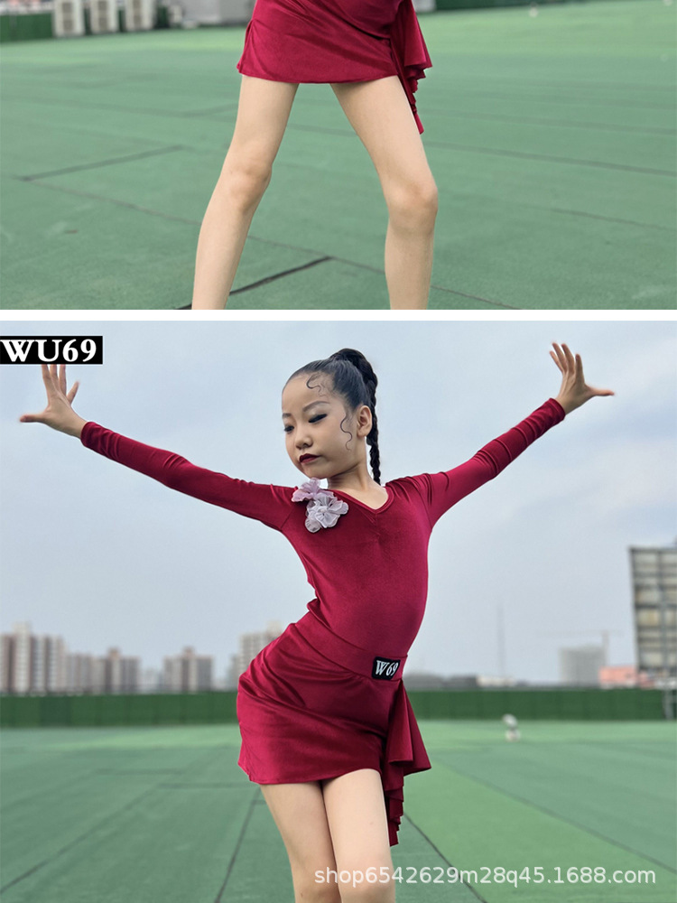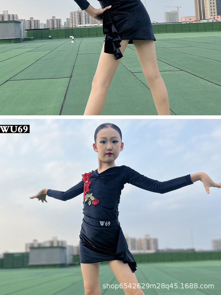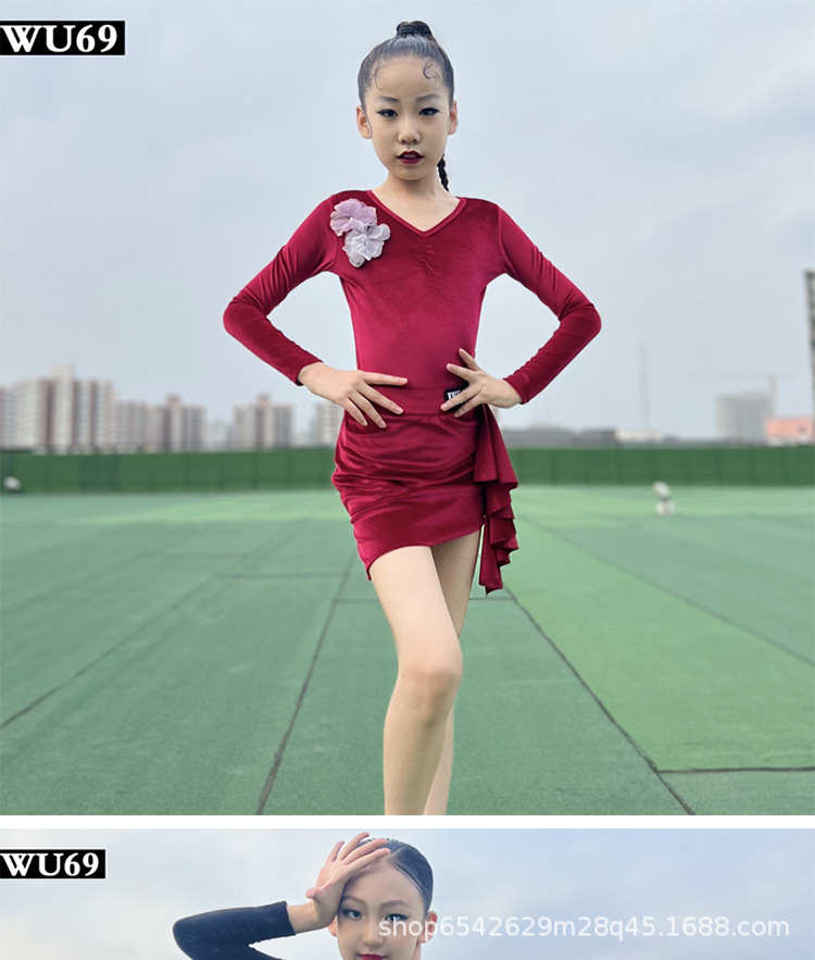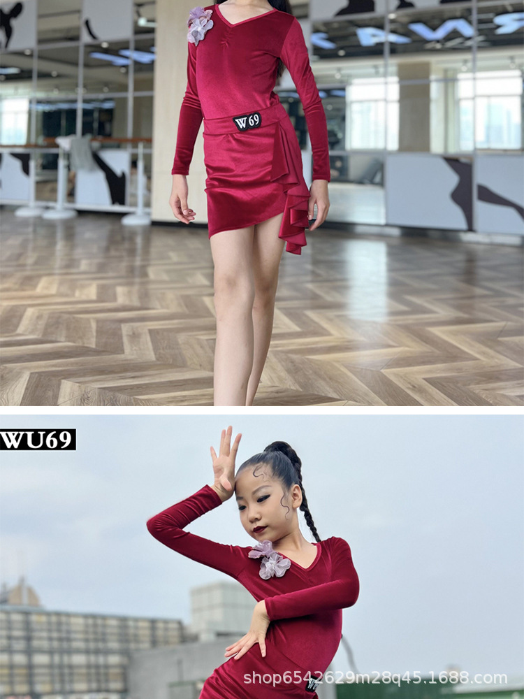 Pakaian latihan dansa Latin anak, pakaian pertunjukan anak-anak, pakaian latihan dansa profesional, pakaian beludru, pakaian dansa Latin anak-anak musim gugur dan musim dingin