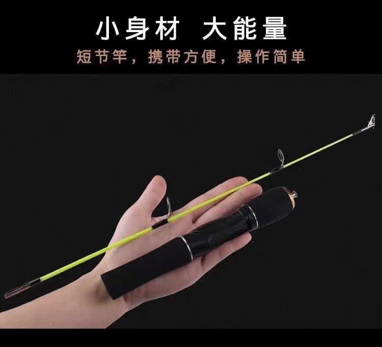 Tongkat pancing es, setelan memancing rakit ultra pendek gagang pistol lurus tongkat pancing es memancing musim dingin set lengkap super keras solid Luya tongkat laut