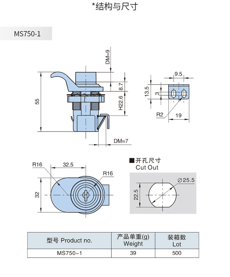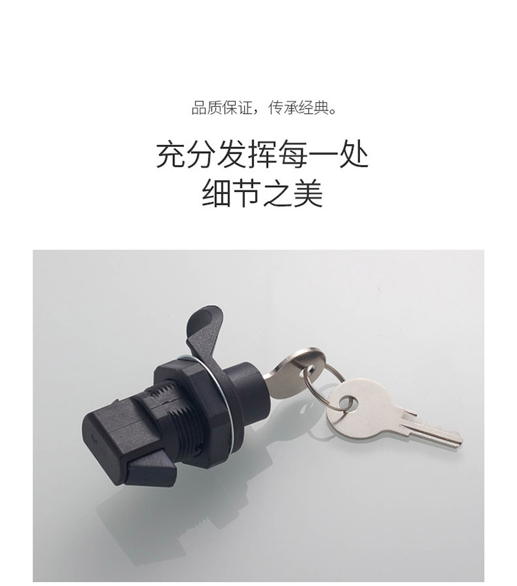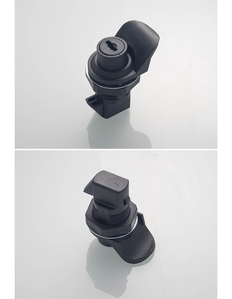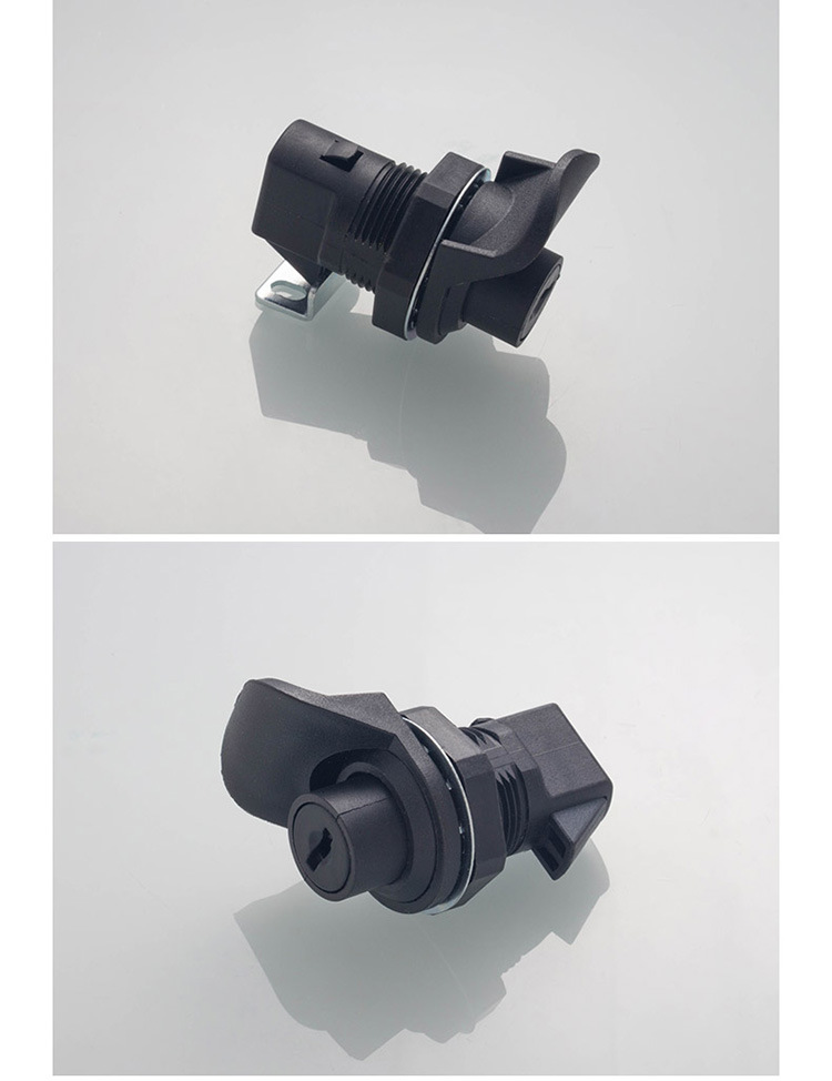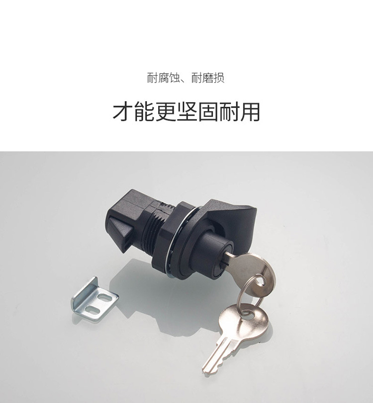 Kunci sakelar putar hitam Hengzhu MS750 untuk pintu kabinet listrik, kunci kotak distribusi industri, kunci dorong plastik tipe tekan