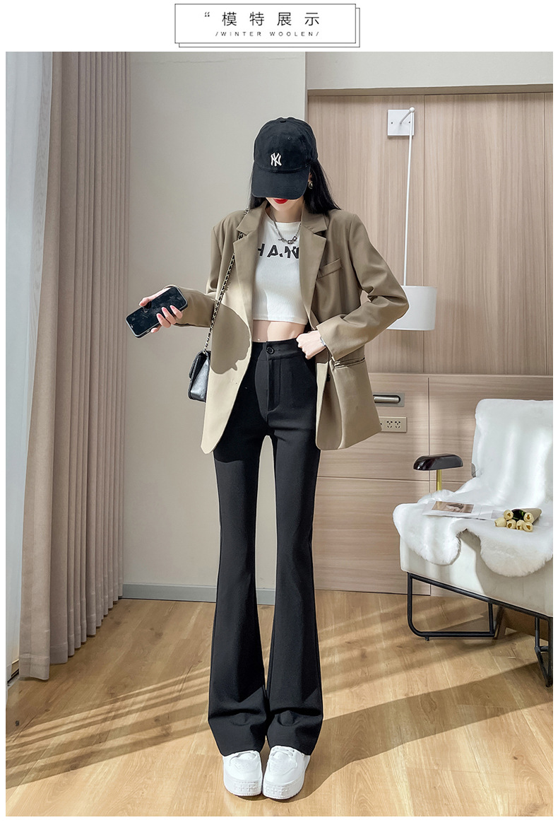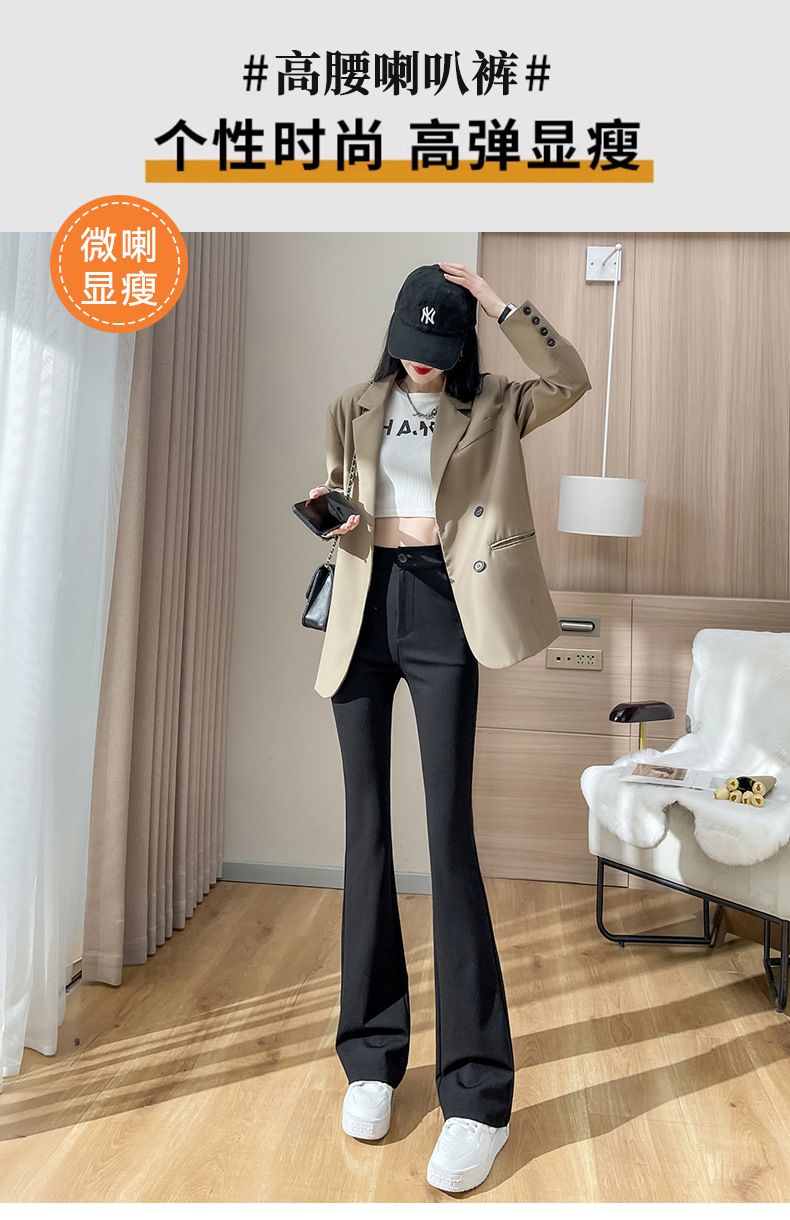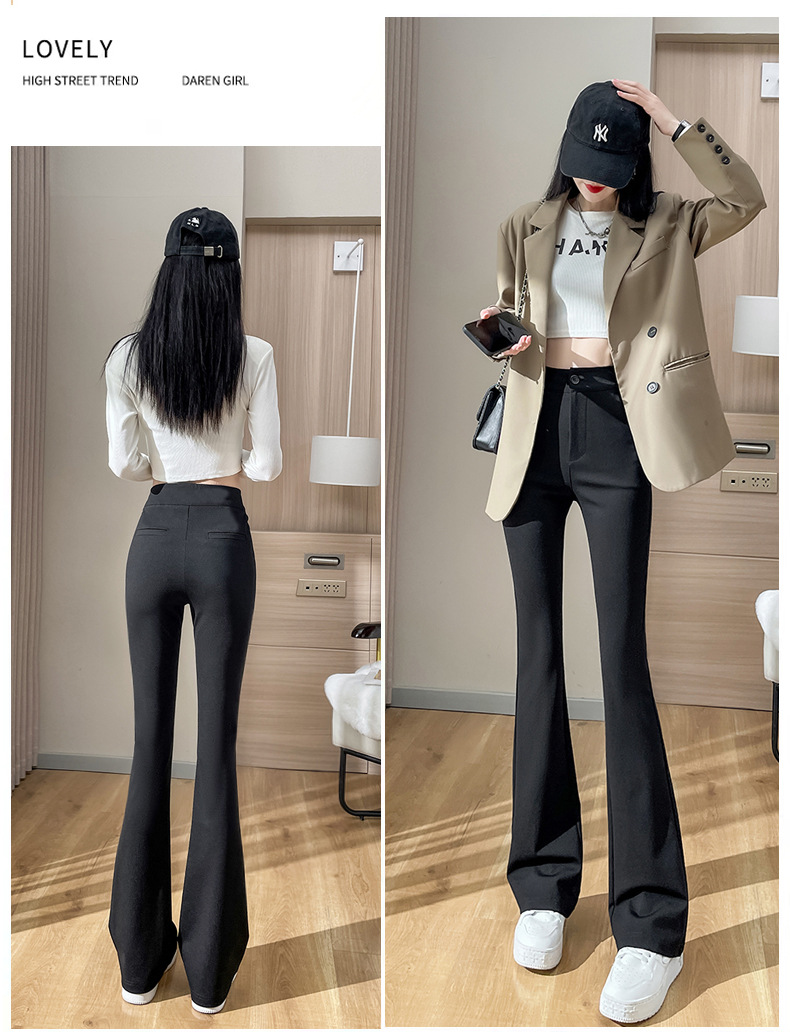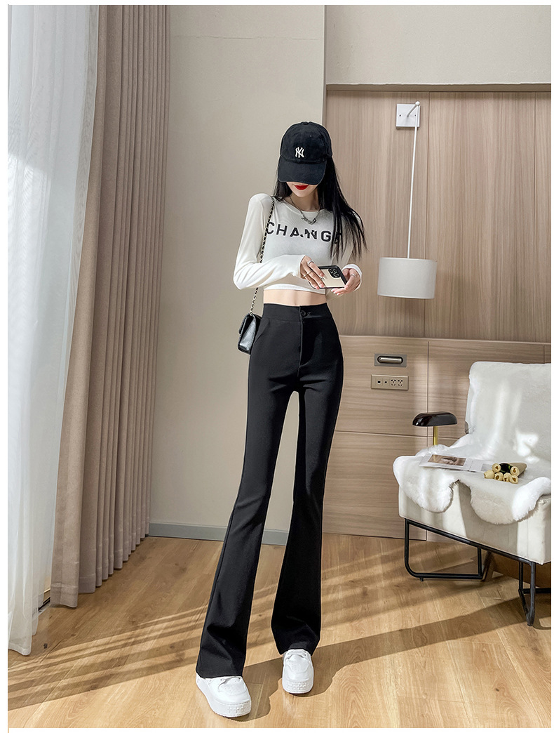 Celana kuda hitam langit-langit ramping setelan celana flare mikro lurus kaki lebar celana ramping ukuran plus untuk wanita