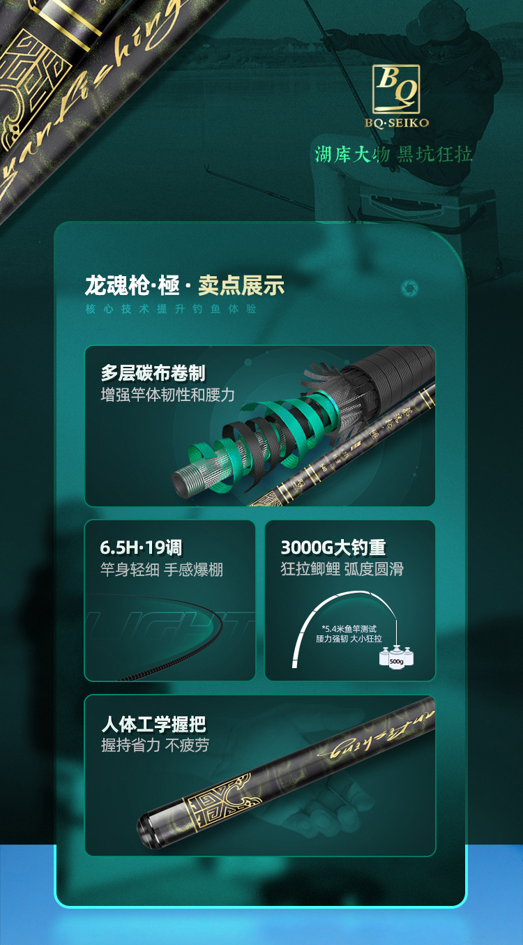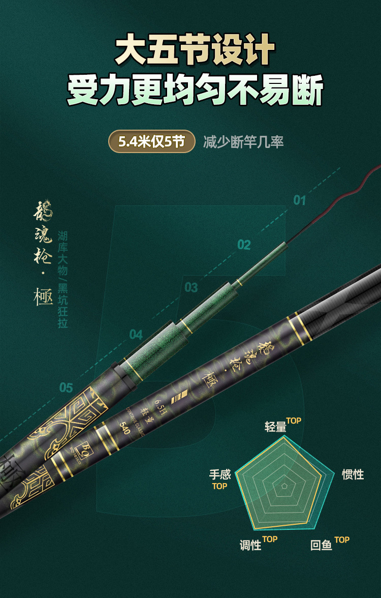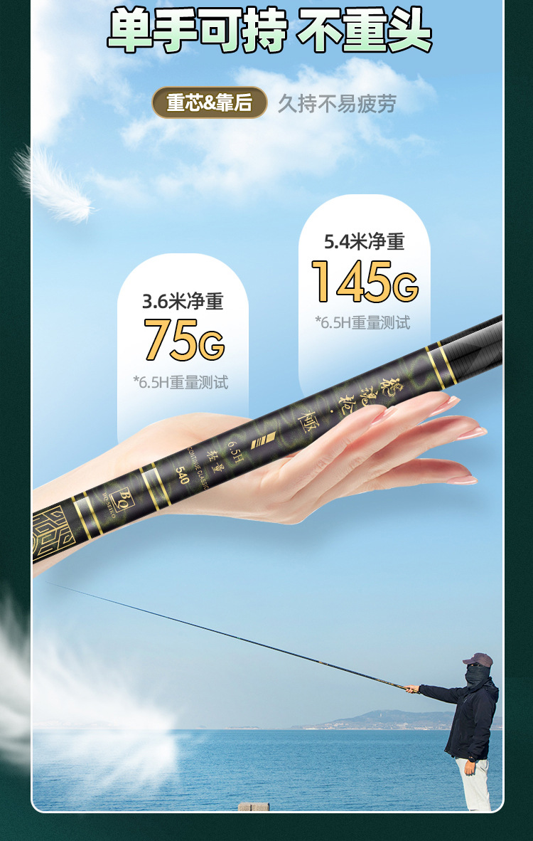 Pancing Produk Baru Pancing 19 Re Model Baru 6h 5 Bagian Besar 5.4 Meter Tiang Keras Ringan Lubang Hitam Tiang Ikan Mas Tiang Danau 4,5 m