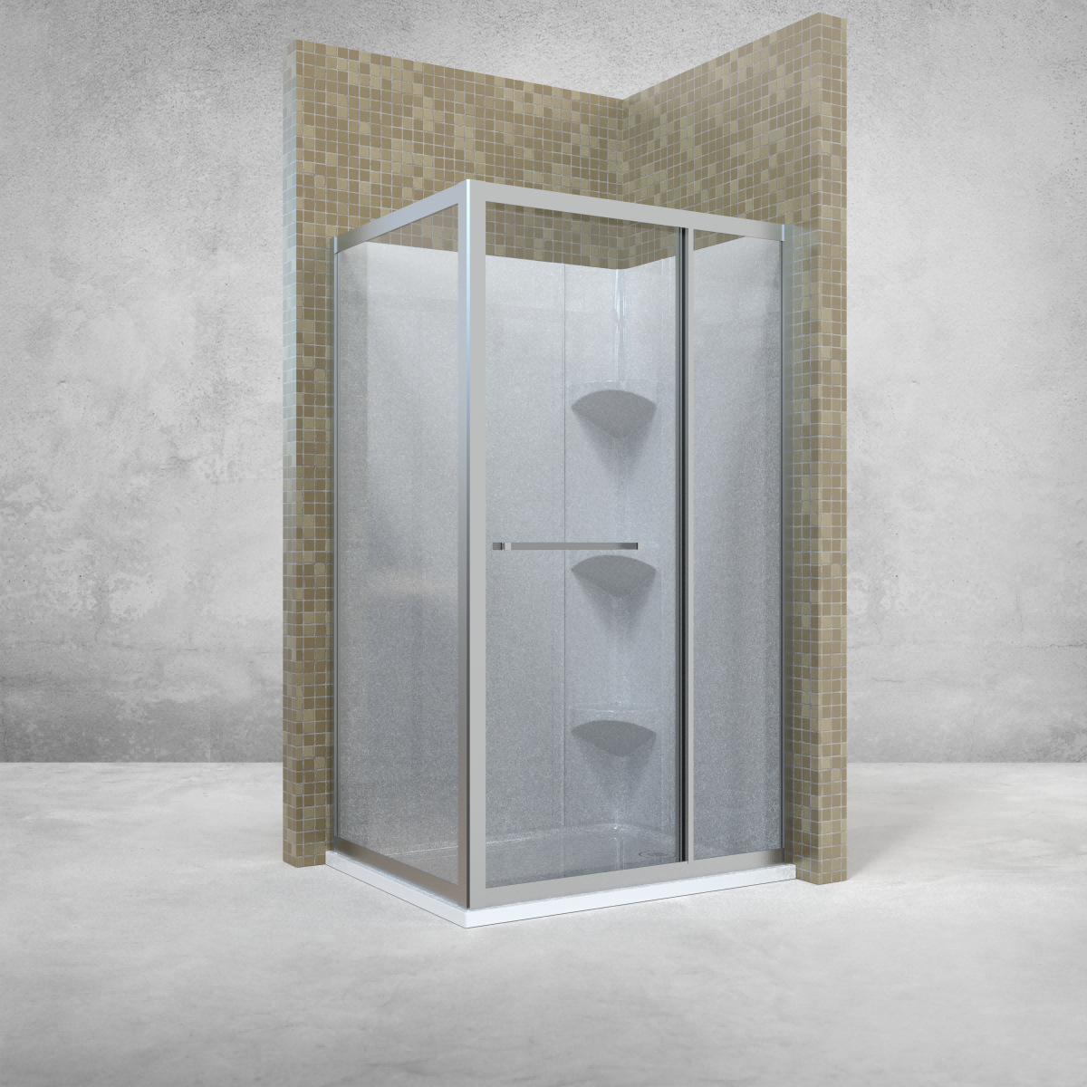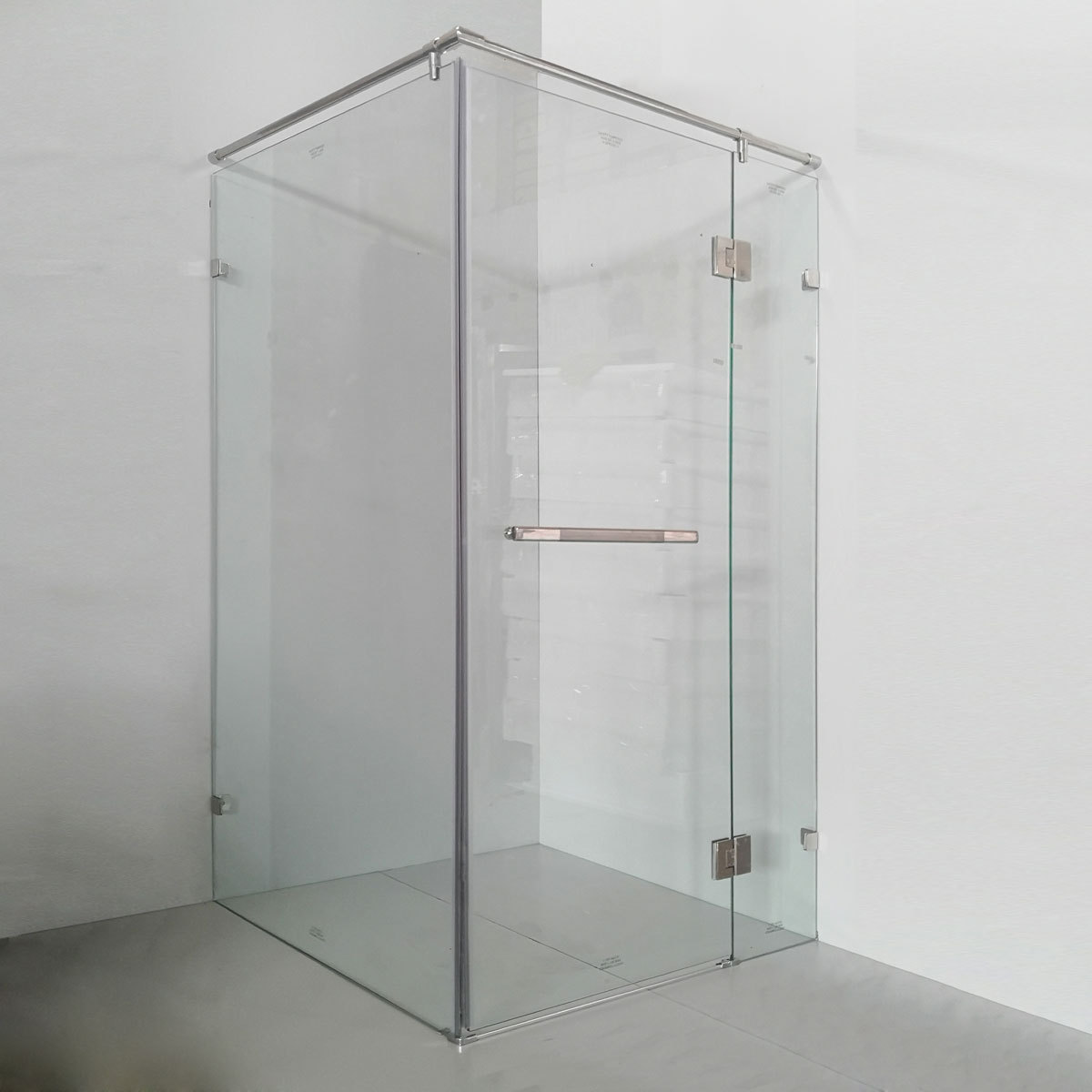 Kamar mandi kaca tempered geser, ruang Pancuran baja tahan karat sangat sempit, pemisah basah dan kering kamar mandi kecil bentuk L