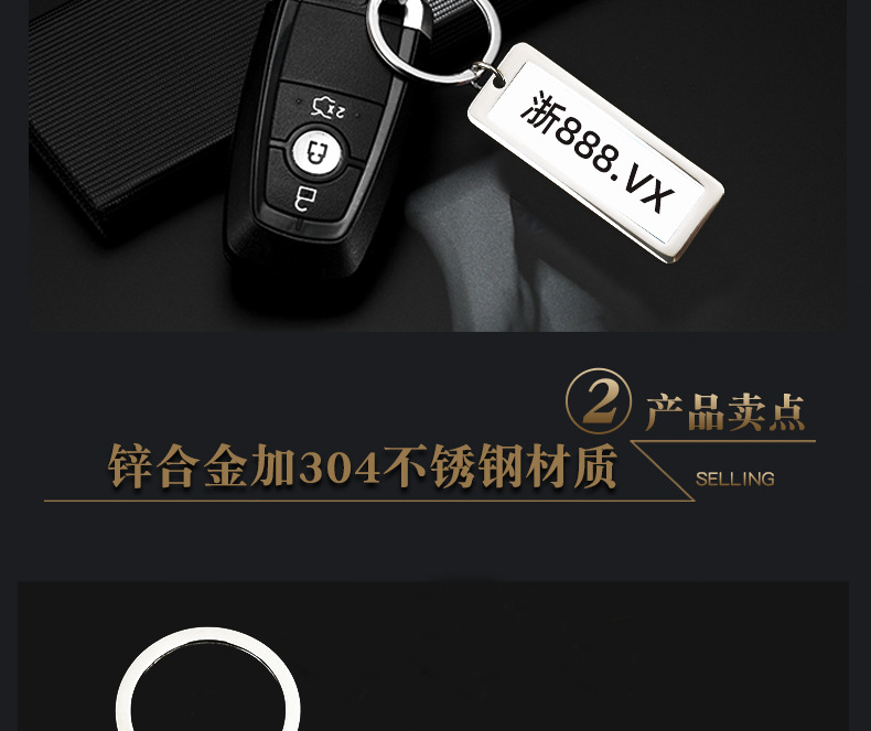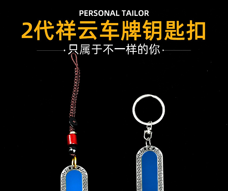Tiktok liontin plat nomor mobil anti hilang, rantai kunci plat nomor laser Xiangyun, baja anti karat, populer