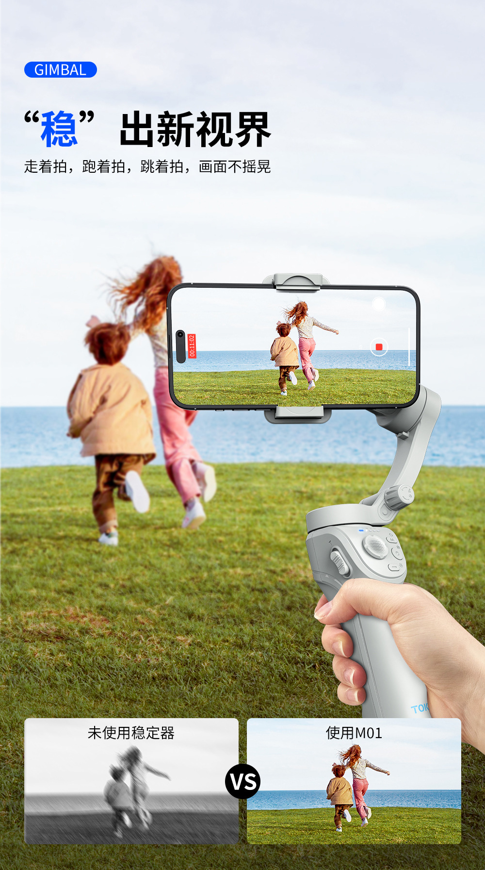 Gimbal genggam tiga sumbu penstabil ponsel anti-goyang pelacakan wajah cerdas M01 fotografi siaran langsung tripod