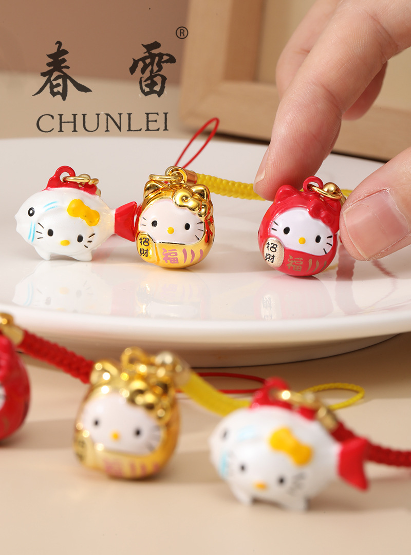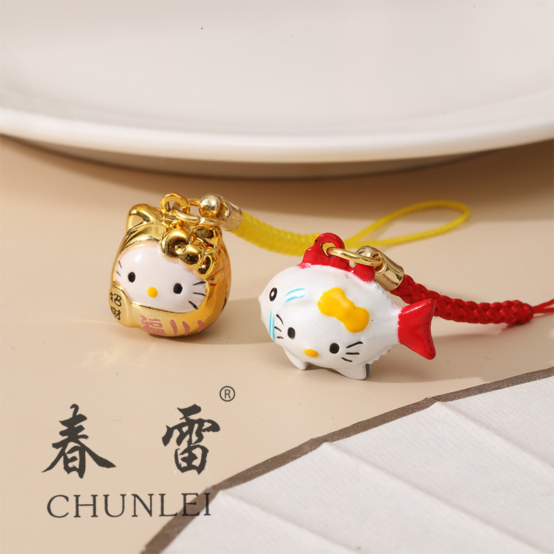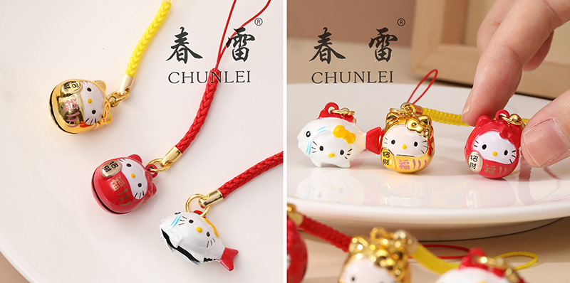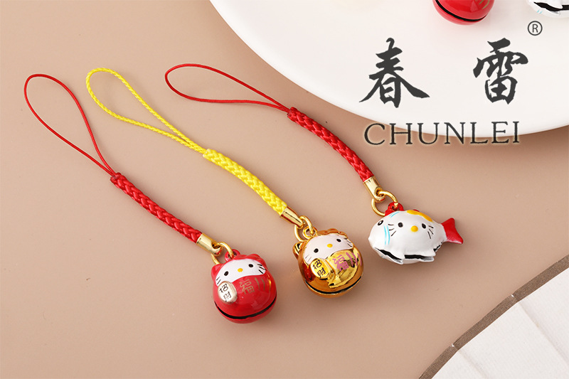 Bel kucing gaya Jepang, aksesoris wanita tas bel kartun, tali gantungan anti hilang, dekorasi ponsel, bel kucing