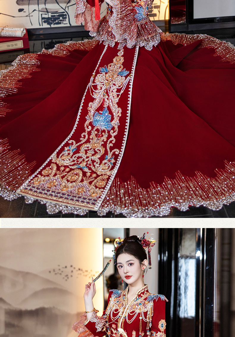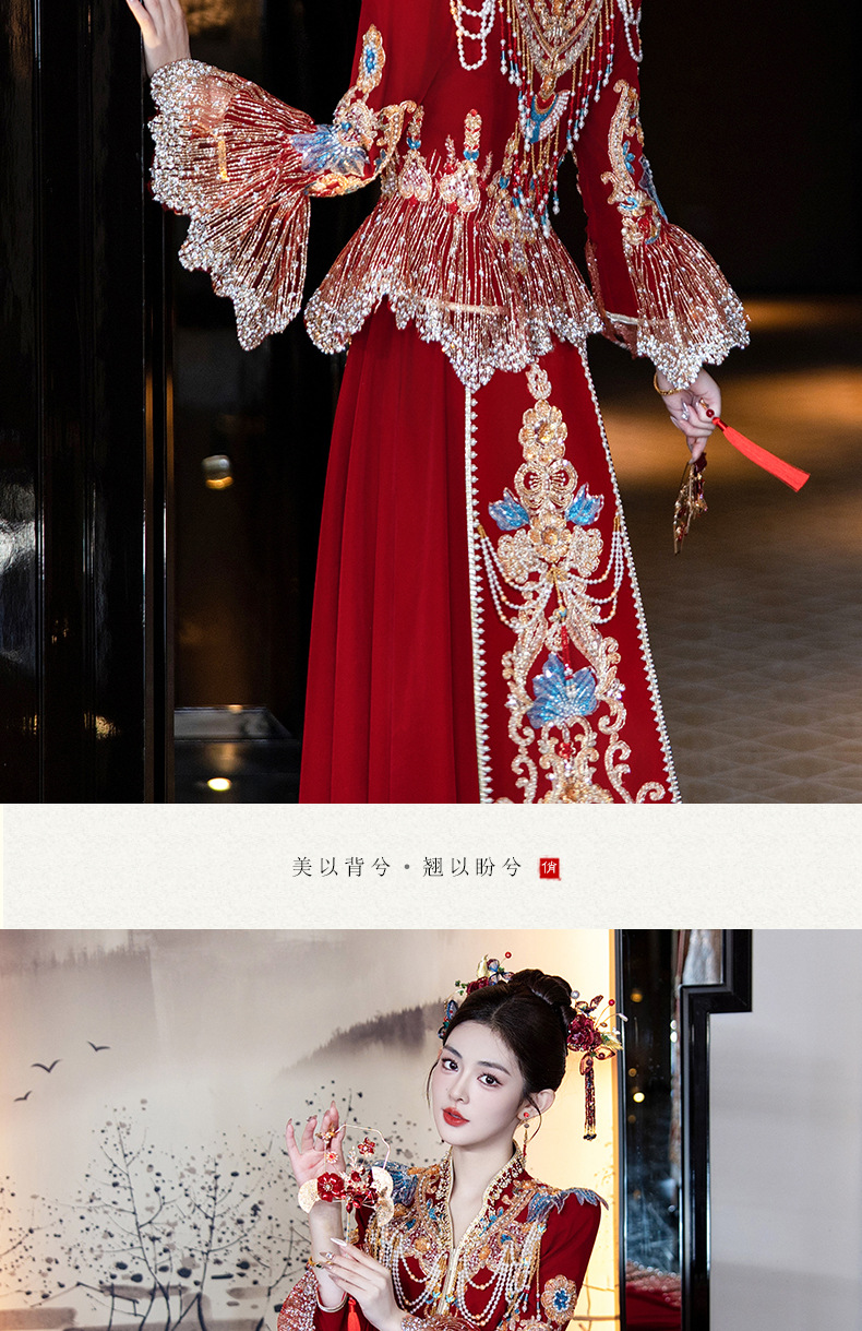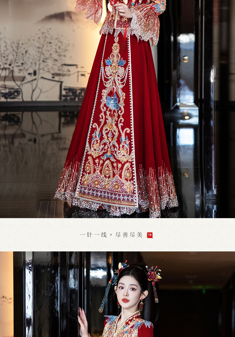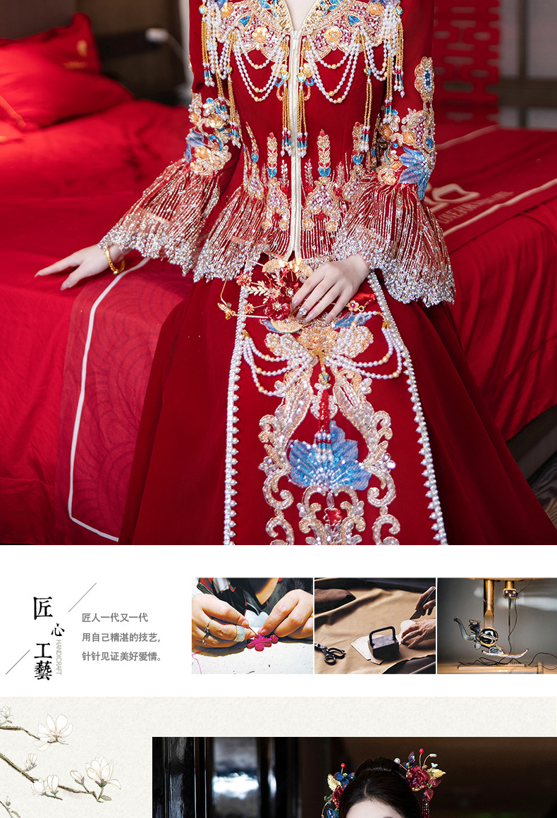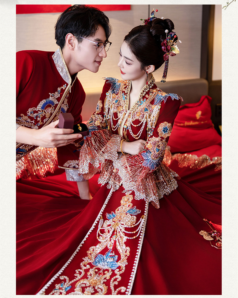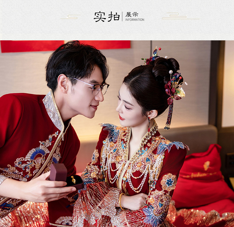 Pakaian Pernikahan Gaya Tiongkok Pria Kecil Feng Guanxia Pakaian Pernikahan Pengantin Wanita Gaun Pengantin Wanita Mewah Model Baru 2024 Pakaian Pernikahan