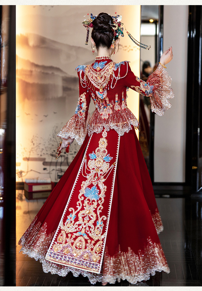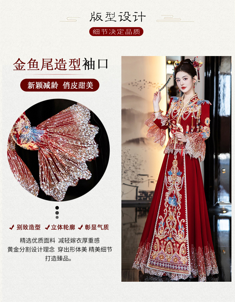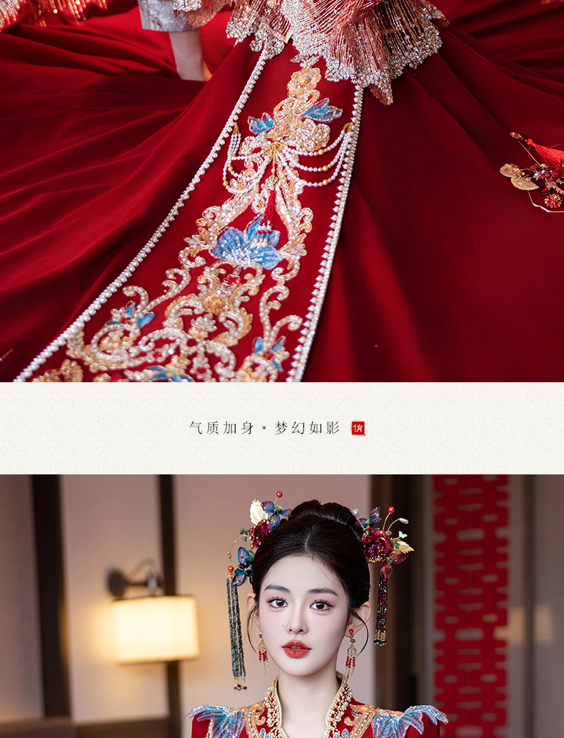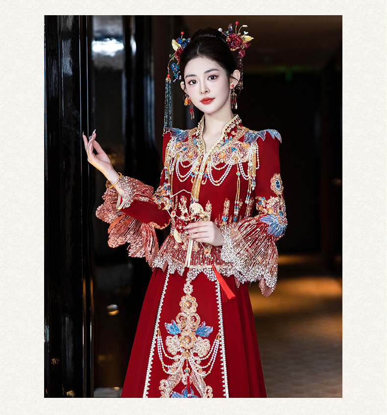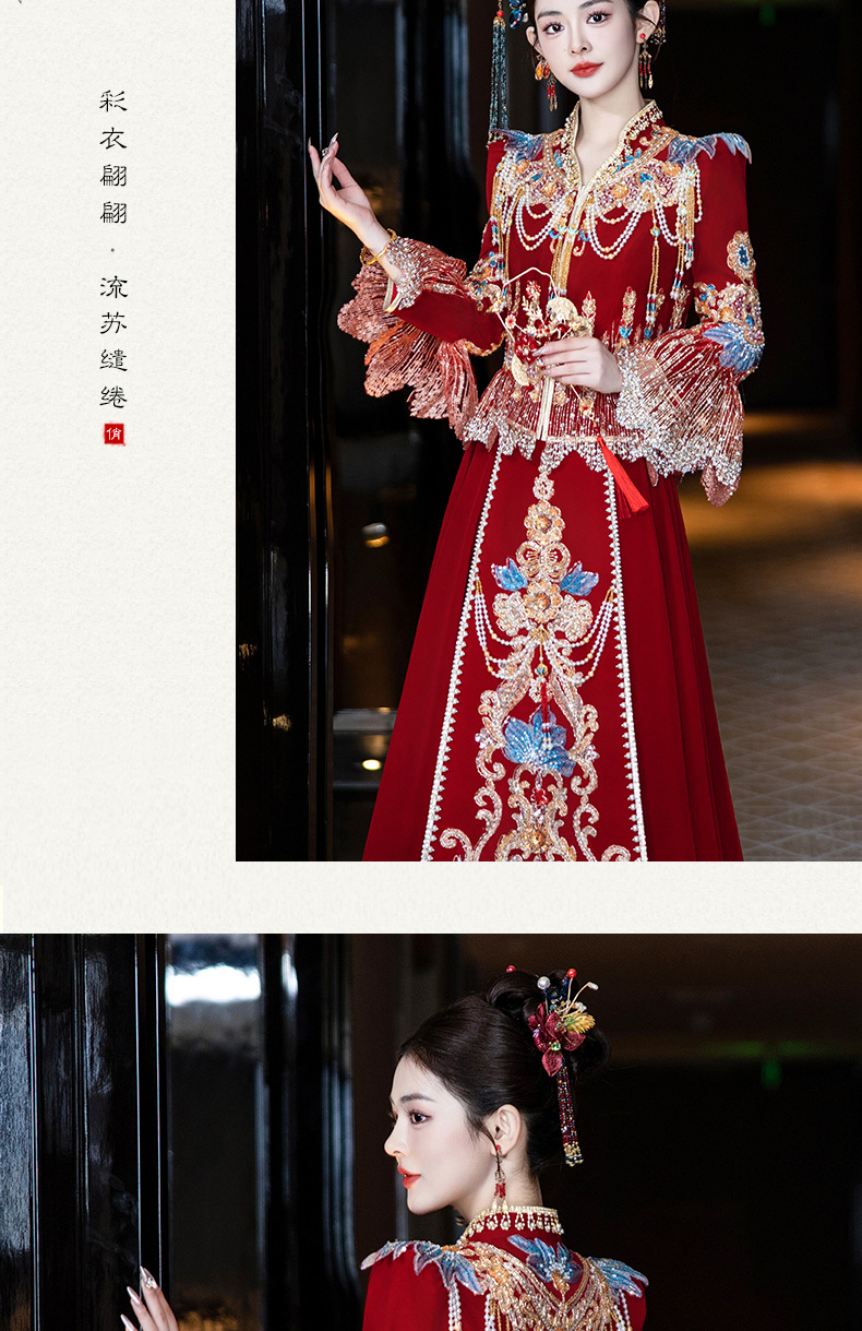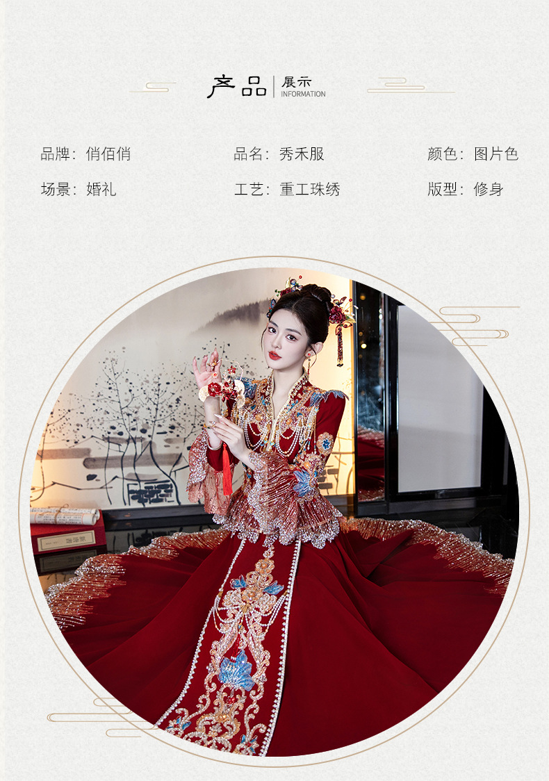 Pakaian Pernikahan Gaya Tiongkok Pria Kecil Feng Guanxia Pakaian Pernikahan Pengantin Wanita Gaun Pengantin Wanita Mewah Model Baru 2024 Pakaian Pernikahan