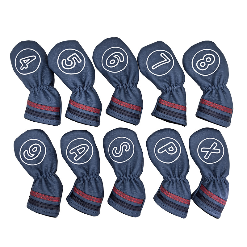 Sarung pelindung tongkat Golf besi 10 pak, penutup batang kulit perlengkapan golf topi kepala bola