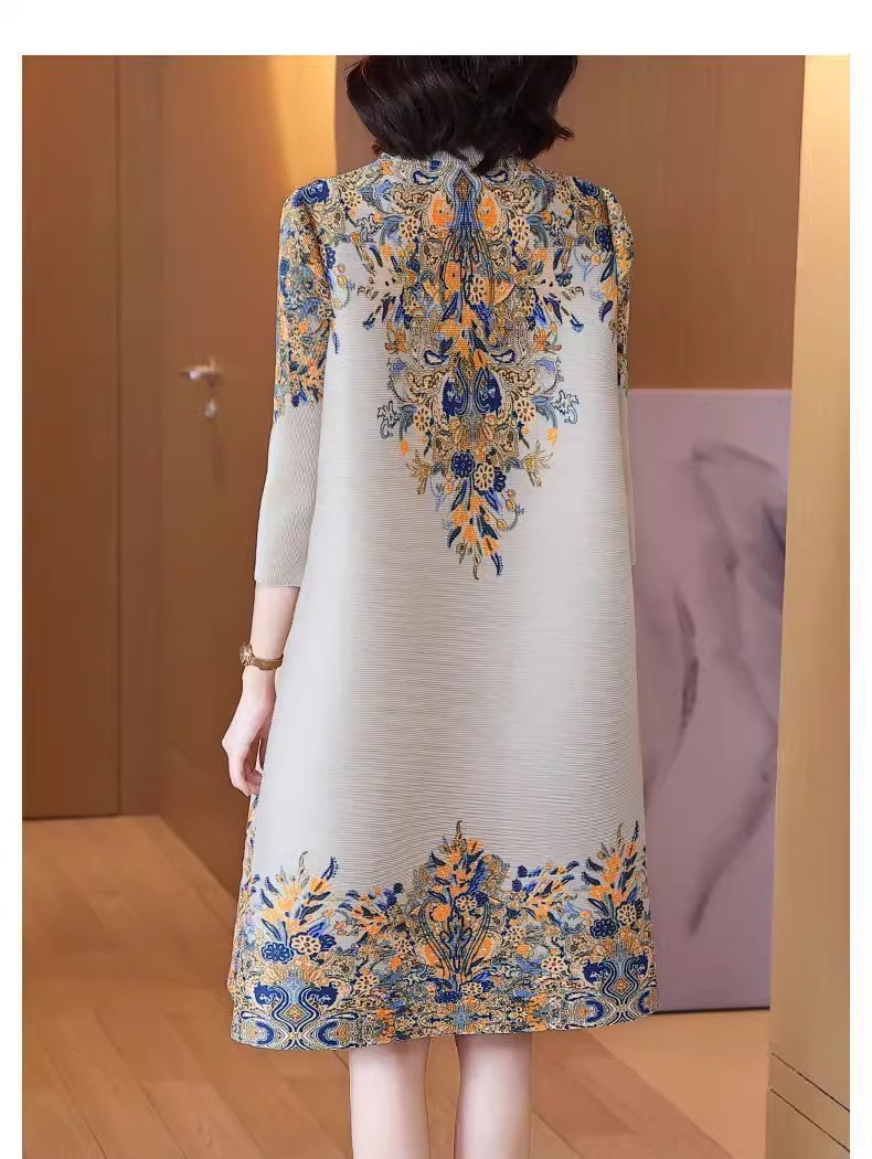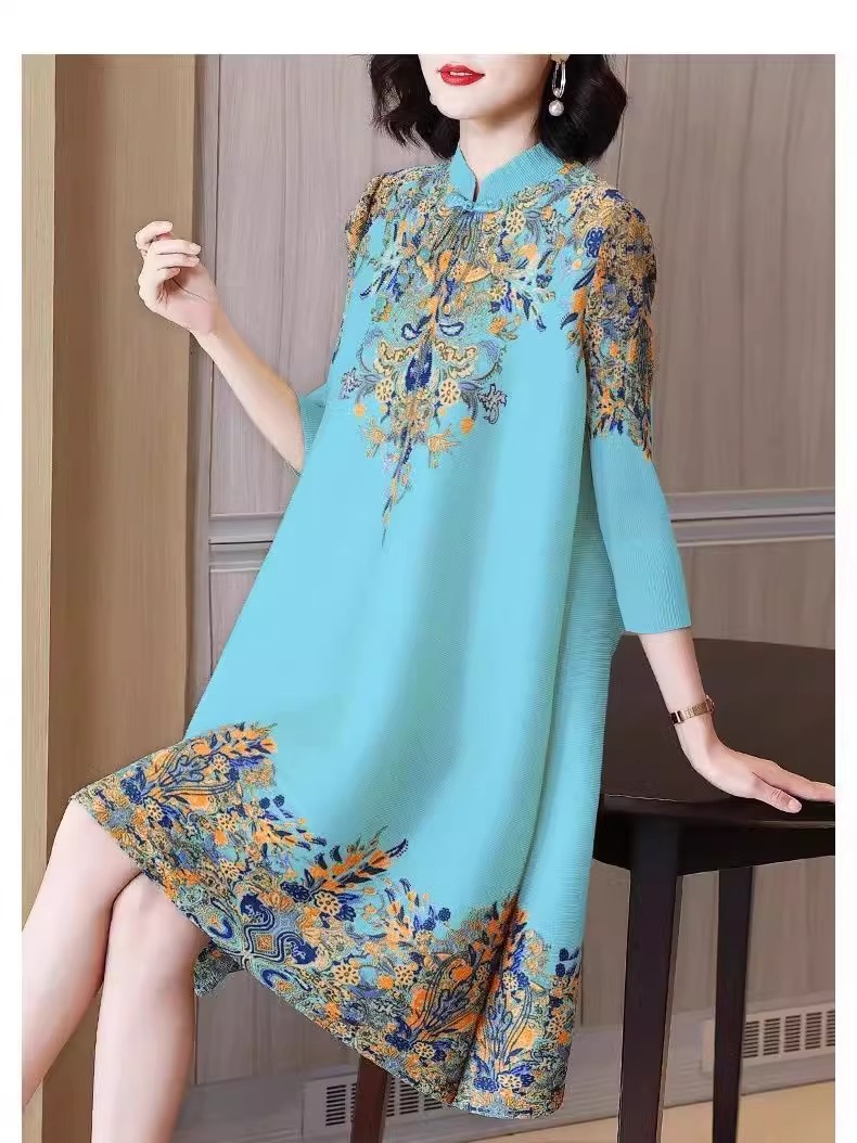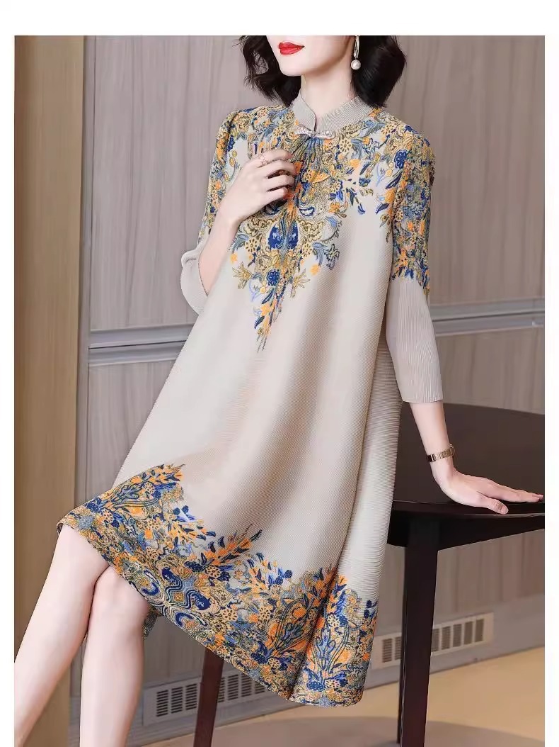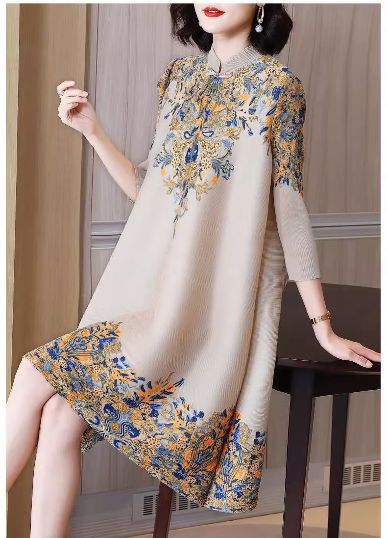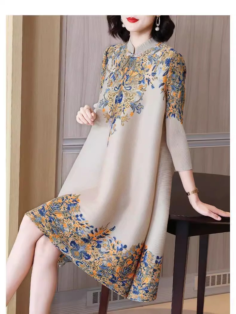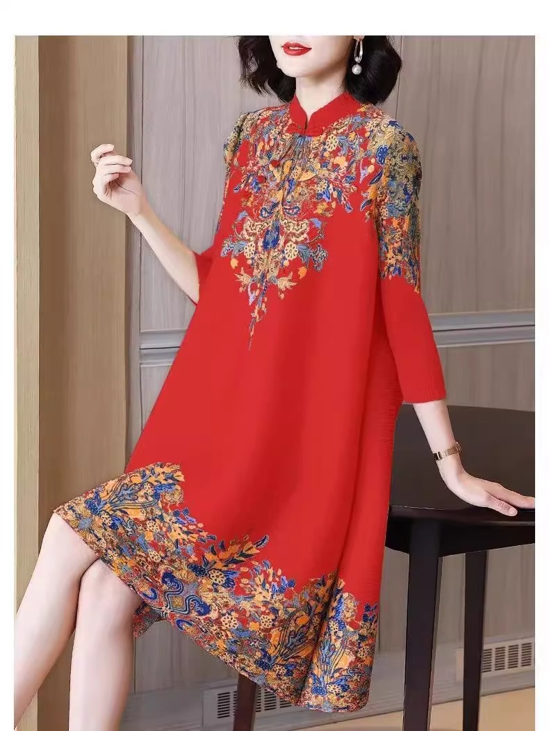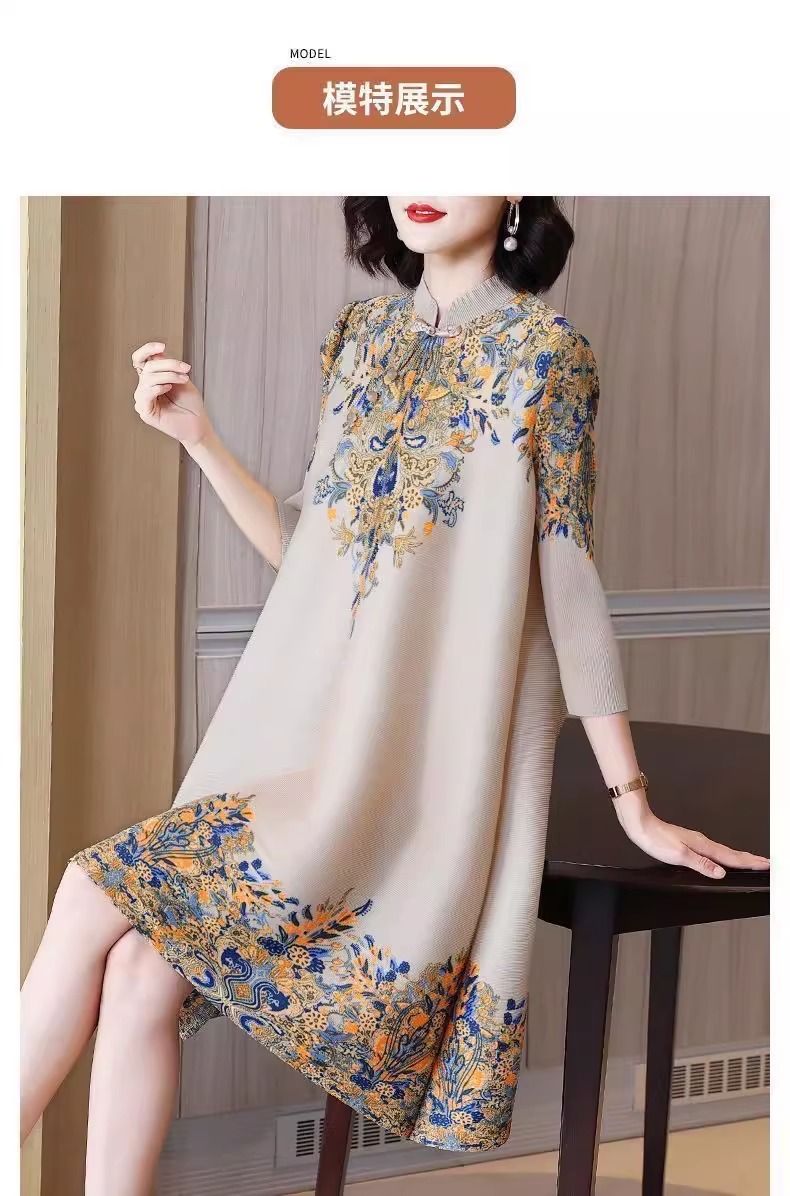 Gaun cheongsam panjang menengah, gaya Korea gaya Barat ibu longgar ukuran besar kerah berdiri ditingkatkan musim semi baru retro elegan