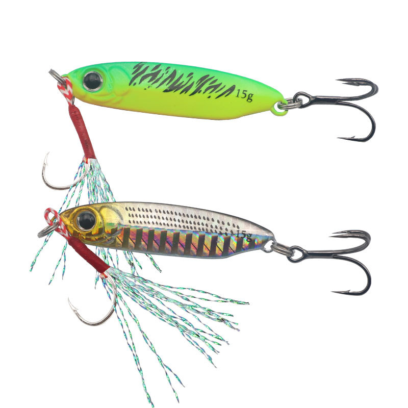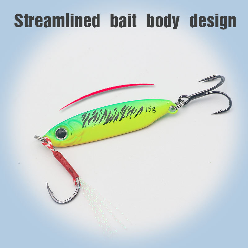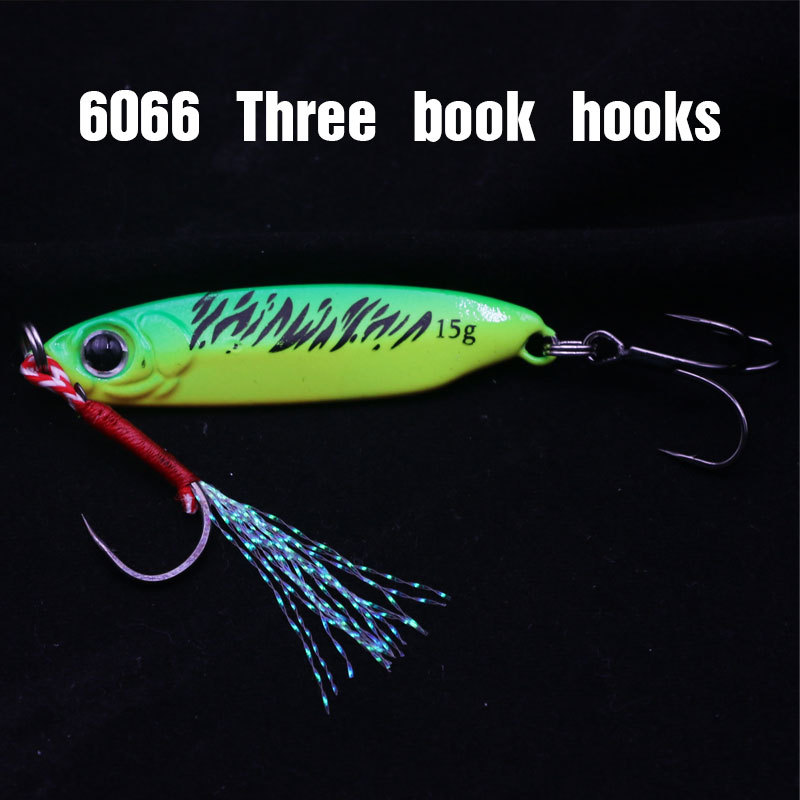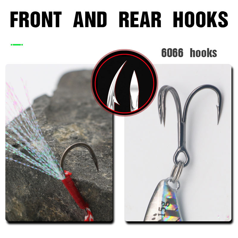 Umpan tiruan untuk lemparan jarak jauh, pelat besi berbentuk pisau biru, umpan keras untuk ikan mandarin dan bass, 6066 umpan tiruan grosir berwarna hitam nikel dengan tiga mata kail.