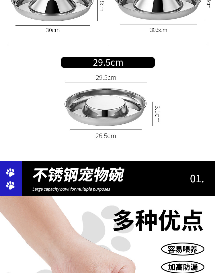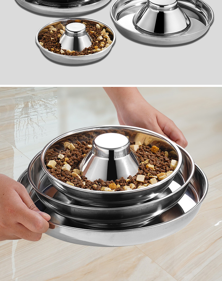 Baru anti jatuh baja tahan karat piring makanan kucing bawah mangkuk makanan kreatif antikarat set makanan anjing makan hewan peliharaan mangkuk makanan kucing