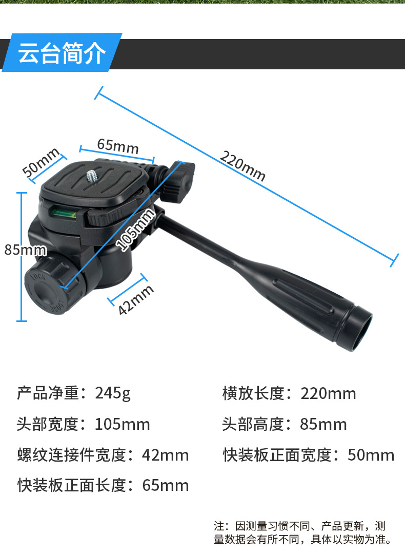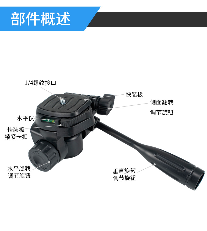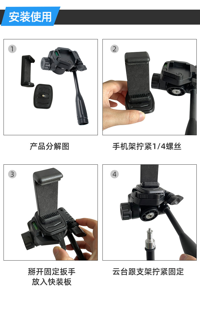 Kepala peralatan kamera fotografi profesional, kepala pelat pelepasan cepat, kamera ponsel universal, pegangan tripod, aksesoris menembak
