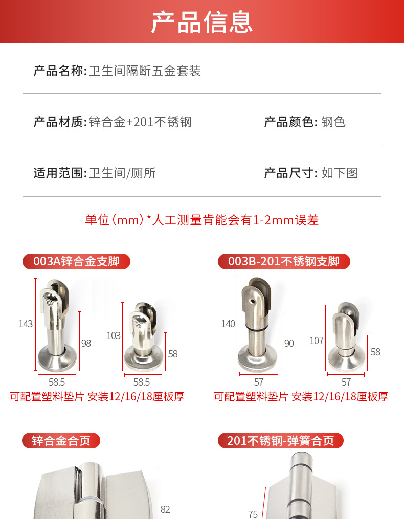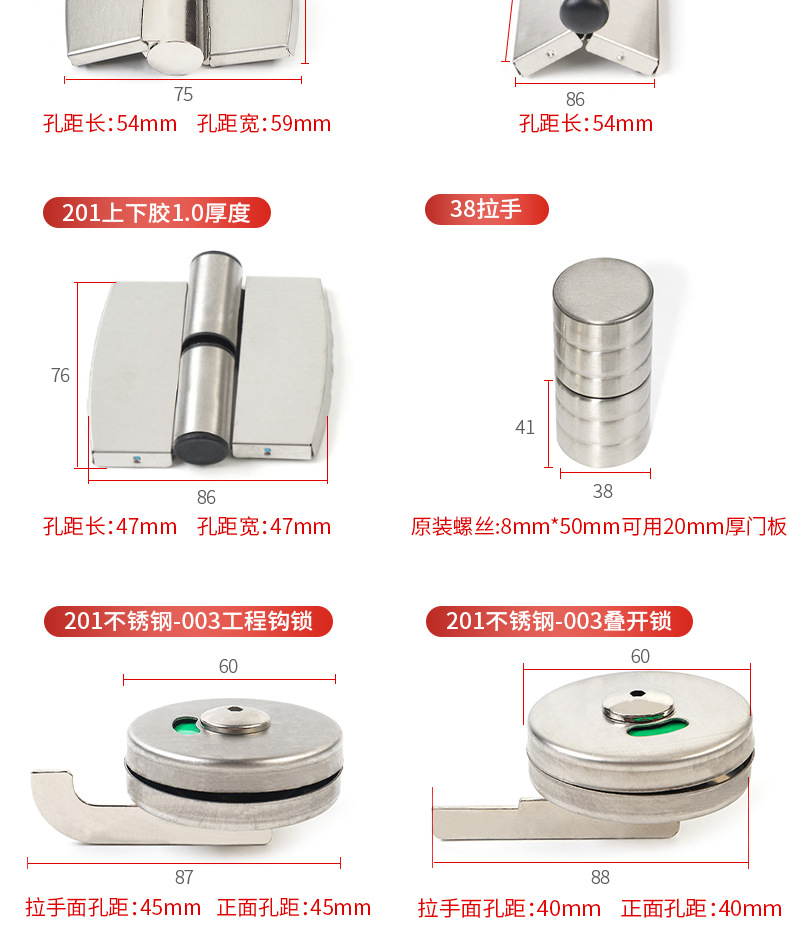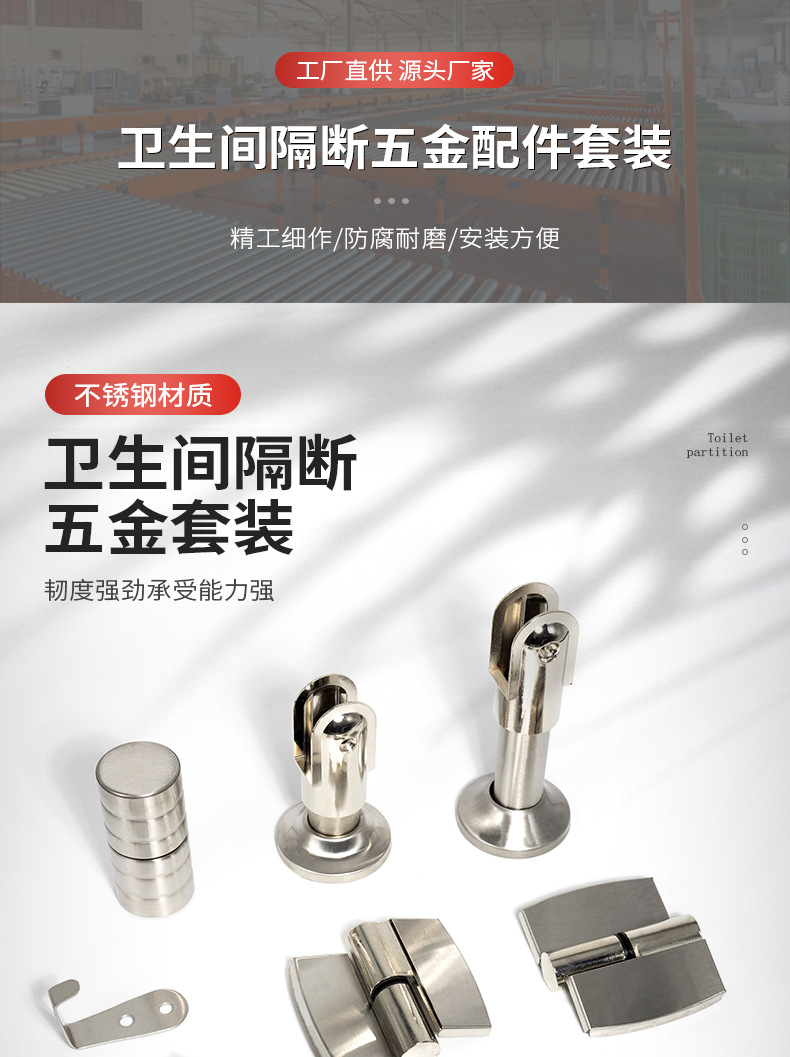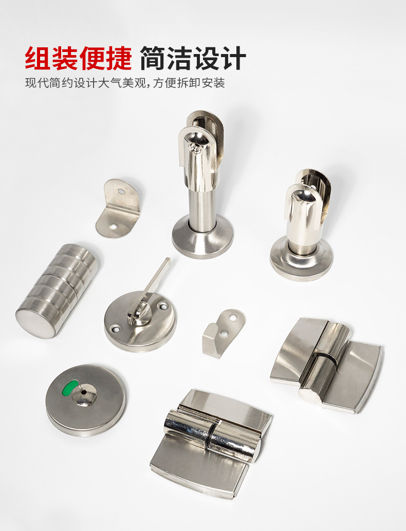Perlengkapan aksesori partisi kamar mandi sekolah, kunci pintu toilet, braket sudut, 201 set aksesori baja tahan karat kamar mandi