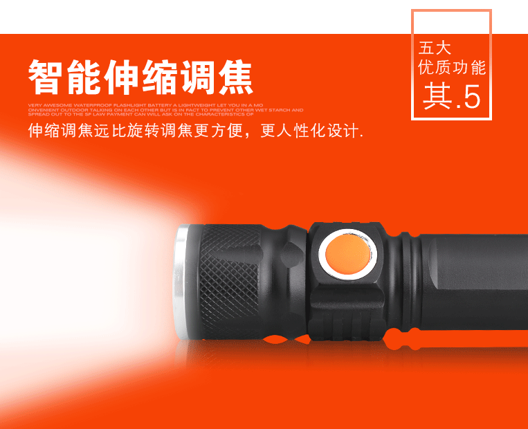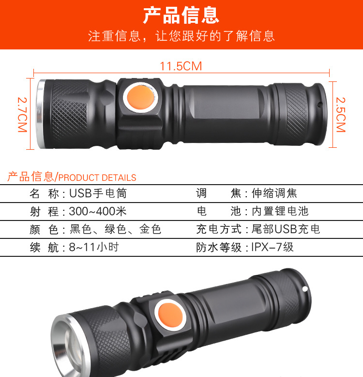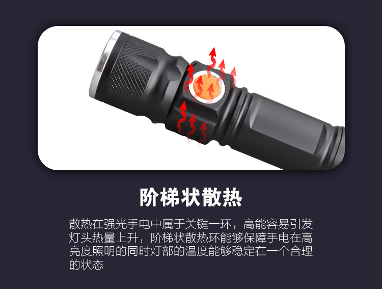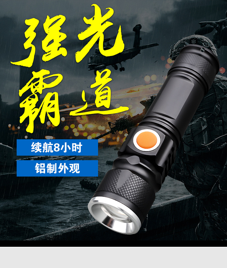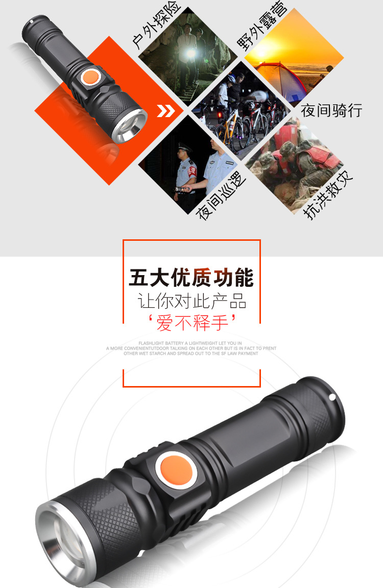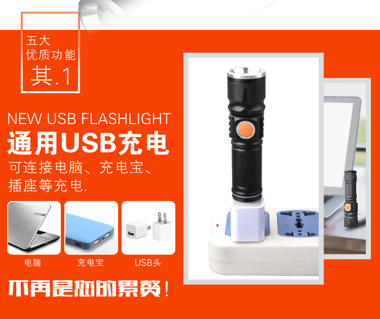 Senter isi ulang USB lampu rumah tangga XML-T6 LED perbesaran meregang senter genggam 515