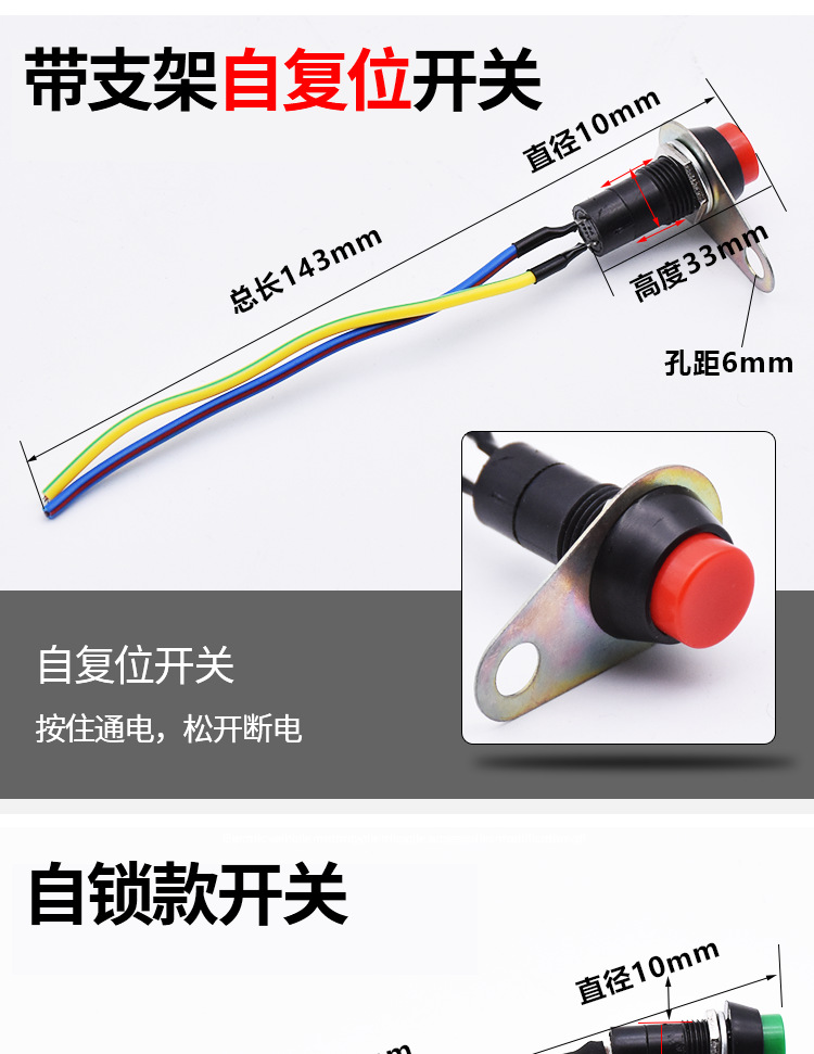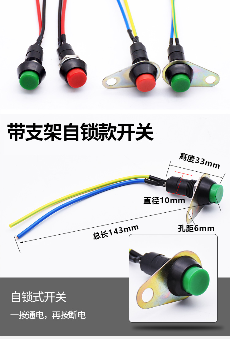 Aksesori modifikasi sepeda motor klakson mobil elektrik saklar lampu depan tombol perakitan pengunci-gratis saklar tombol kecil