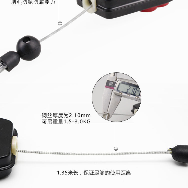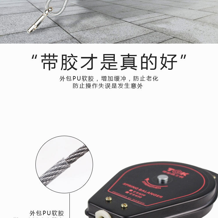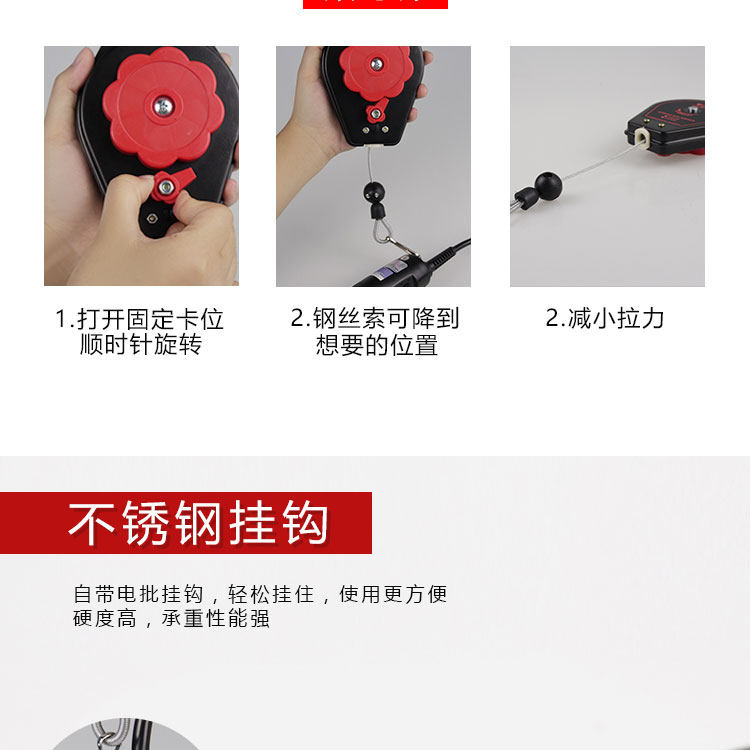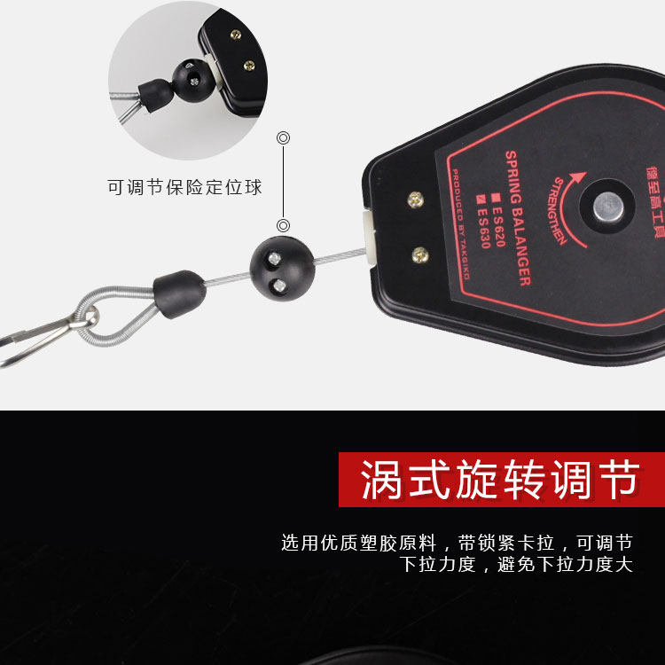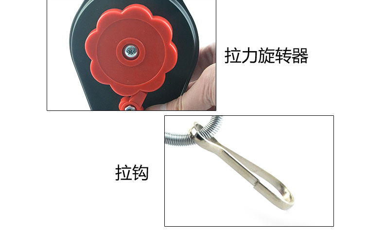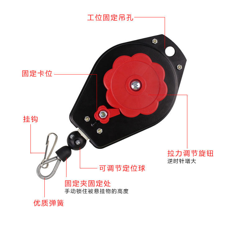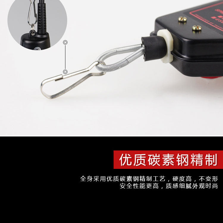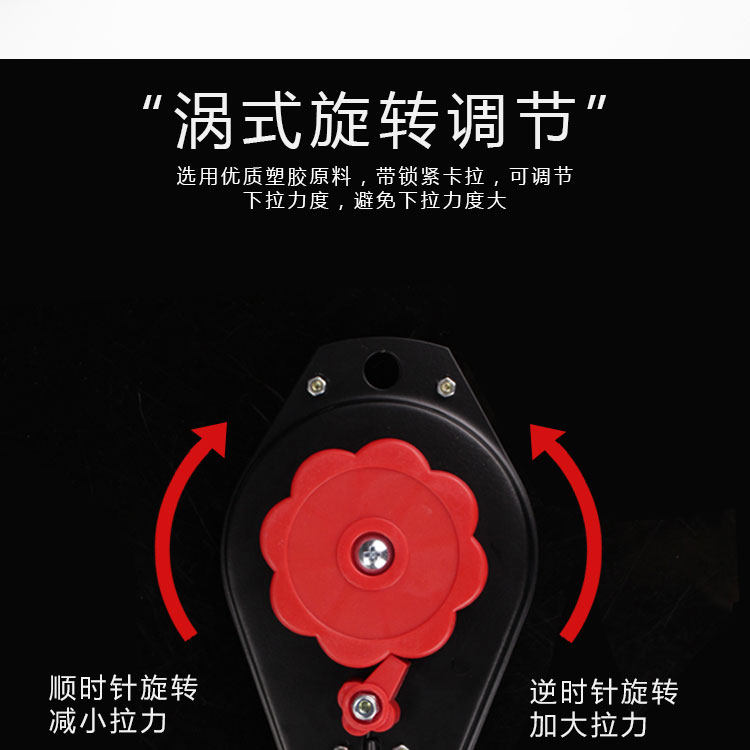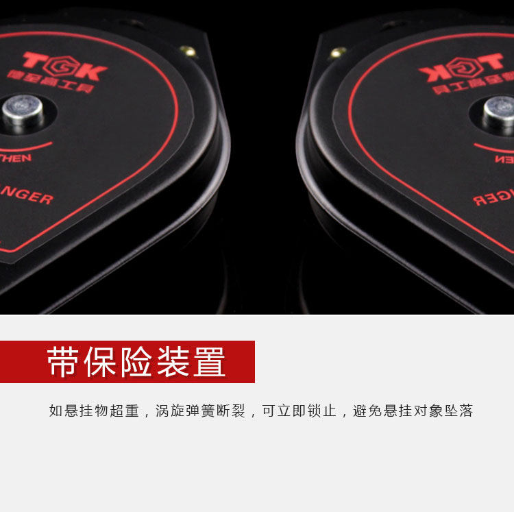 (6)带保险装置,如悬挂物超重,蜗旋弹簧断裂,可立即锁止,避免悬挂对象坠落。