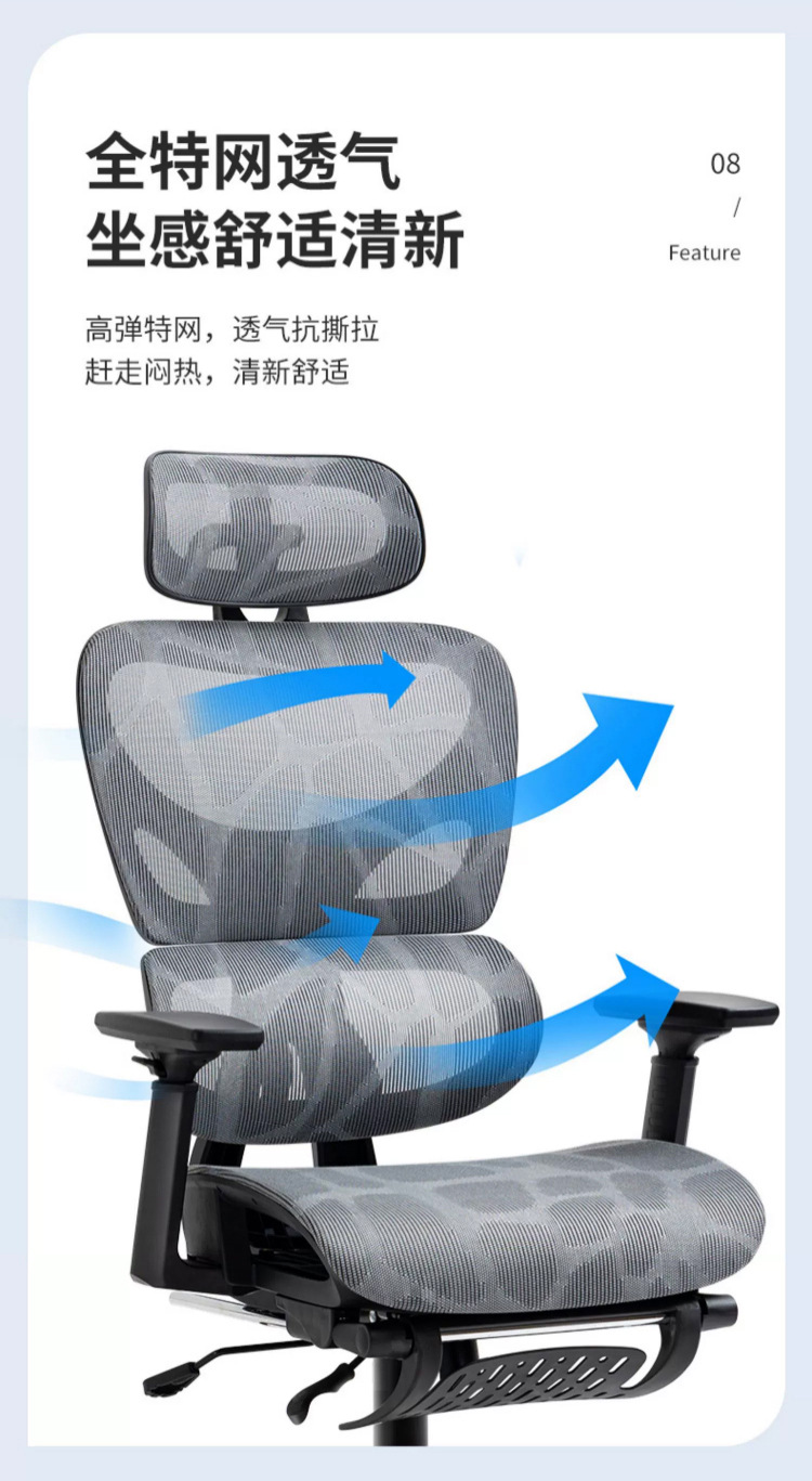 Kursi ergonomis Kaisheng K90 untuk remaja, kursi menulis dan kantor, kursi komputer belajar siswa, ketinggian dapat diatur.