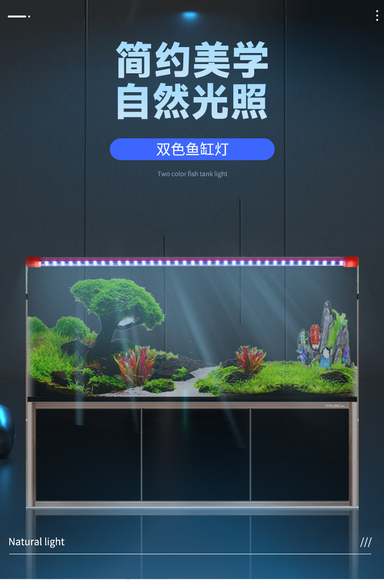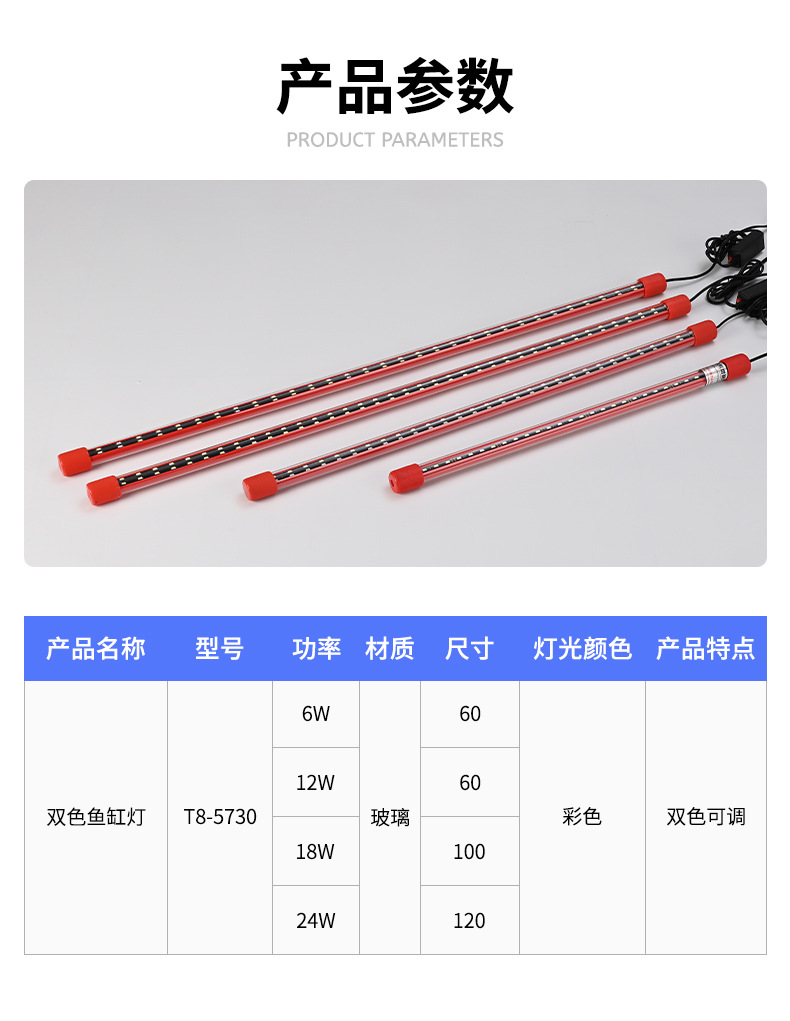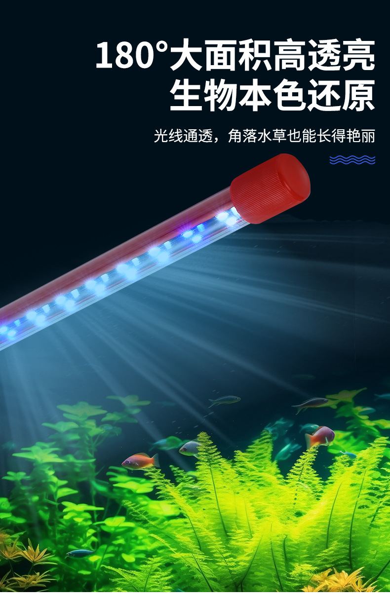 Lampu penambah warna akuarium dua warna, pencahayaan untuk ikan naga merah dan ikan naga emas, lampu submersible tahan air T8, lampu LED, lampu tanaman akuarium.
