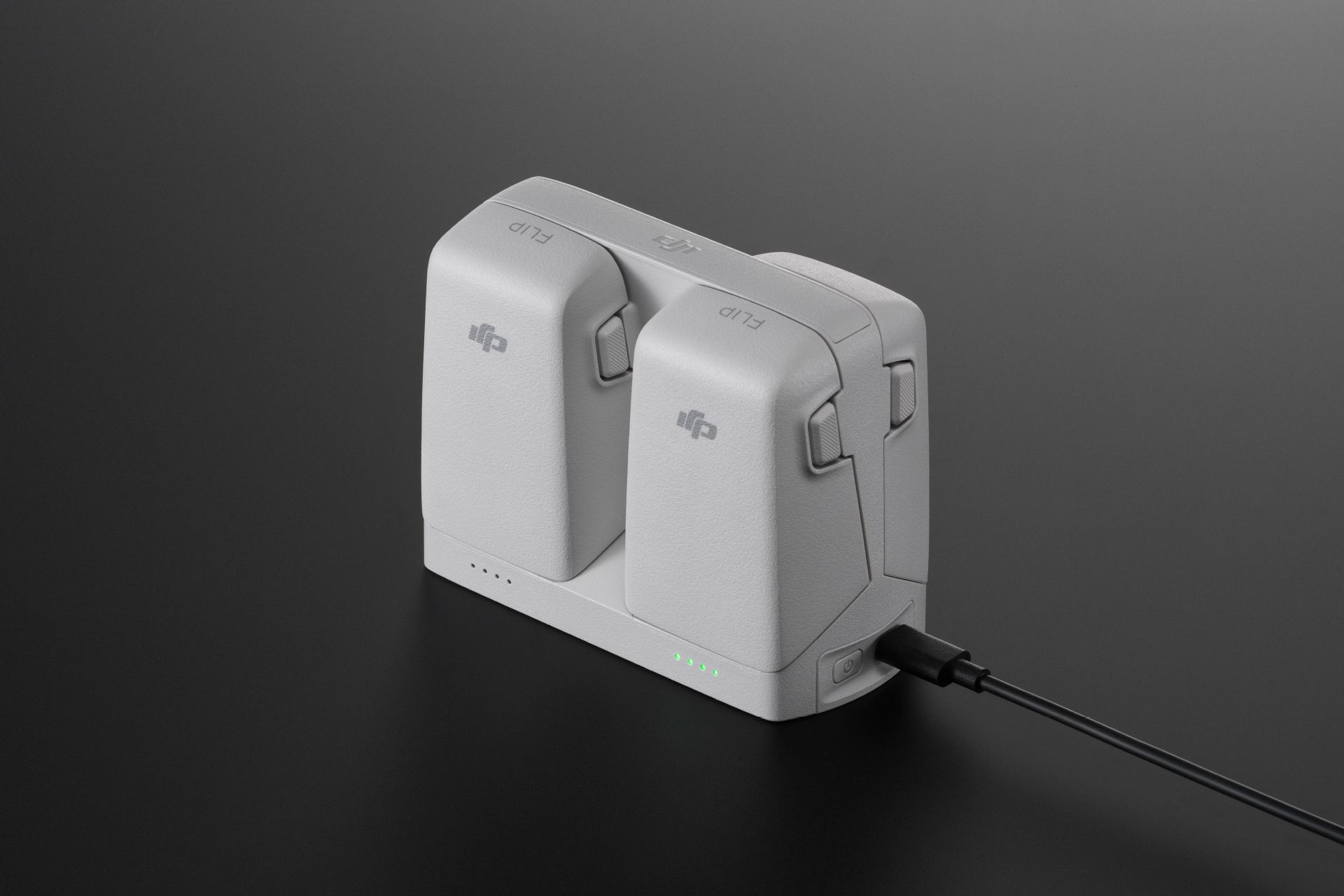 可收纳电池及为电池充电;配合 DJI 65W 便携充电器,仅需 70 分钟即可同时充满 2 块智能飞行电池。