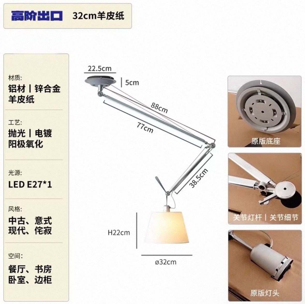 Ruang Belajar Italia Lampu Gantung Restoran Abad Pertengahan Dapat Pindah Tolomeo Rocker Arm Kamar Tidur Desainer Lampu