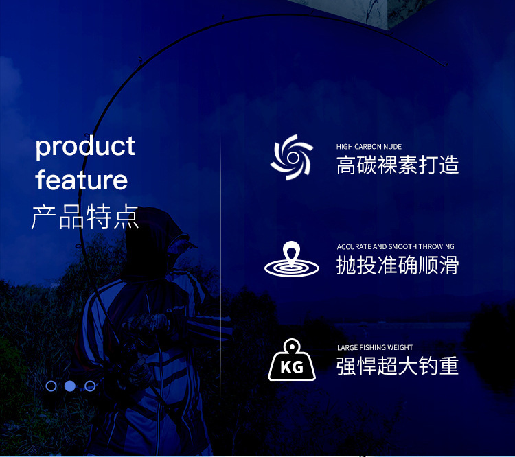 Luya joran pancing karbon gagang lurus, tongkat memancing Luya karbon jangkauan jauh, tongkat lempar manik-manik bass