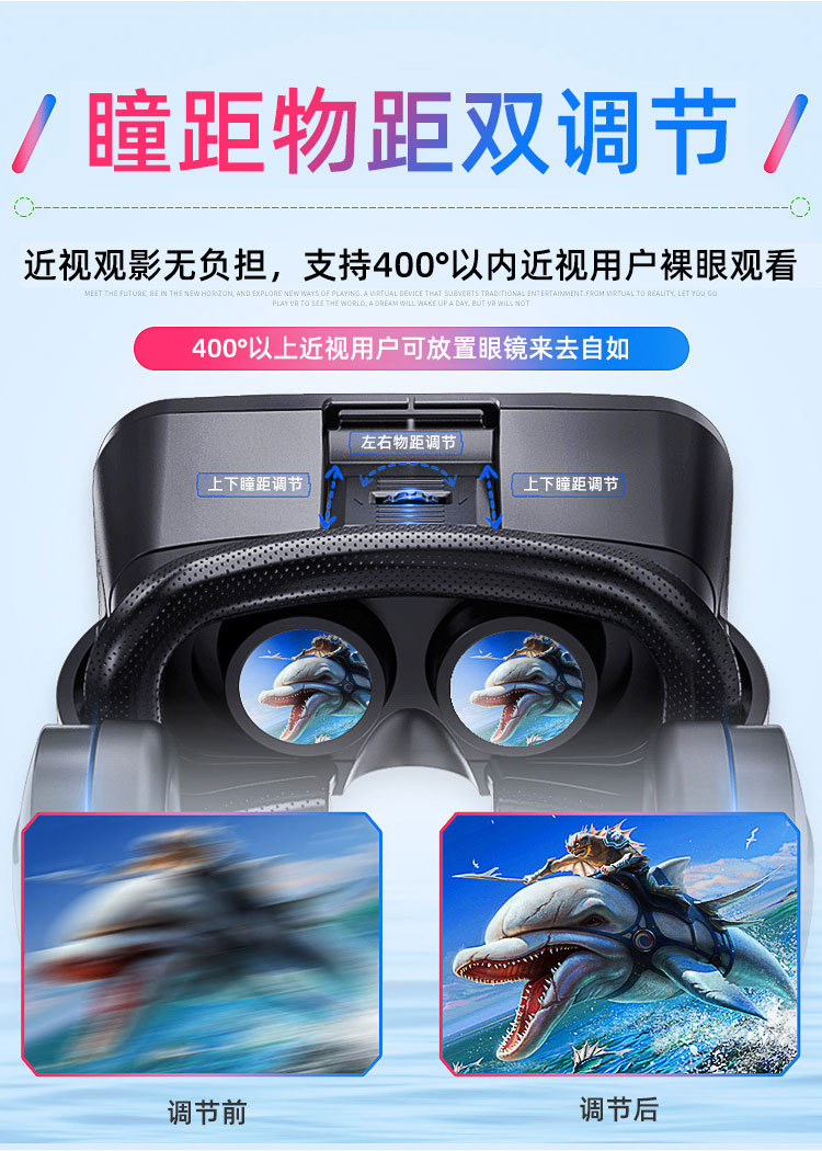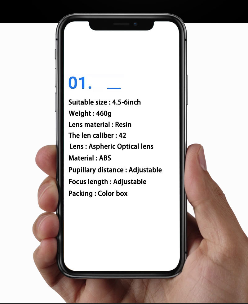 VR魔镜本身没有屏幕也无需用电池,必须配合手机一起使用;使用中所有的画面和声音来自于手机本身。因此体验效果跟手机本身的配置有非常重要的关系! The VR Magic Mirror itself does not have a screen and does not require a battery. It needs to be used in conjunction with a mobile phone. All the visuals and sounds during usage come from the mobile phone itself, so the experience is highly dependent on the configuration of the mobile phone.