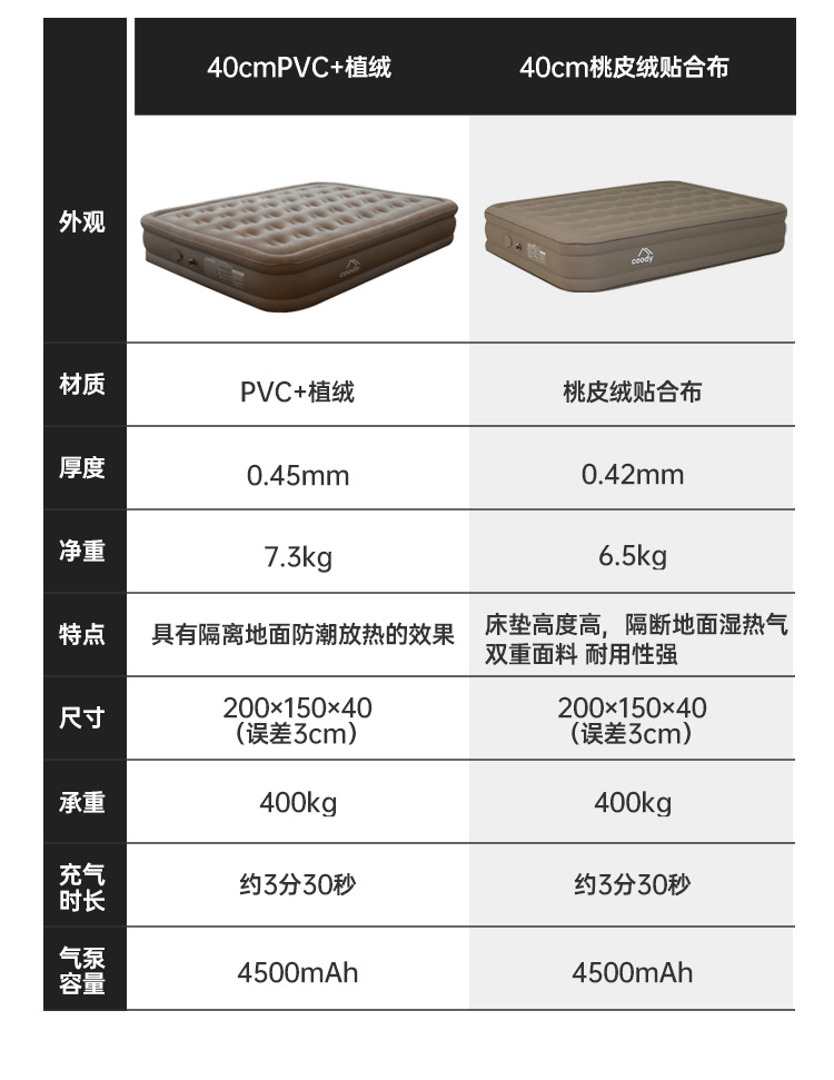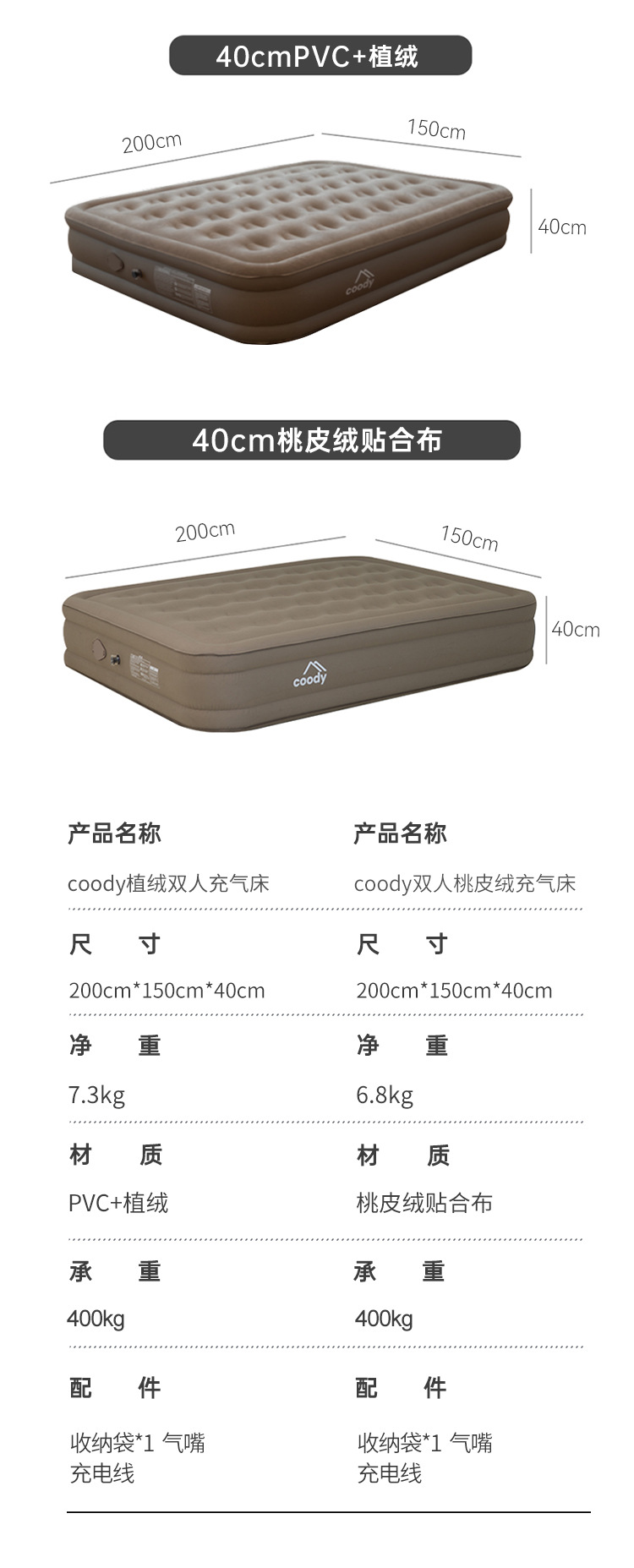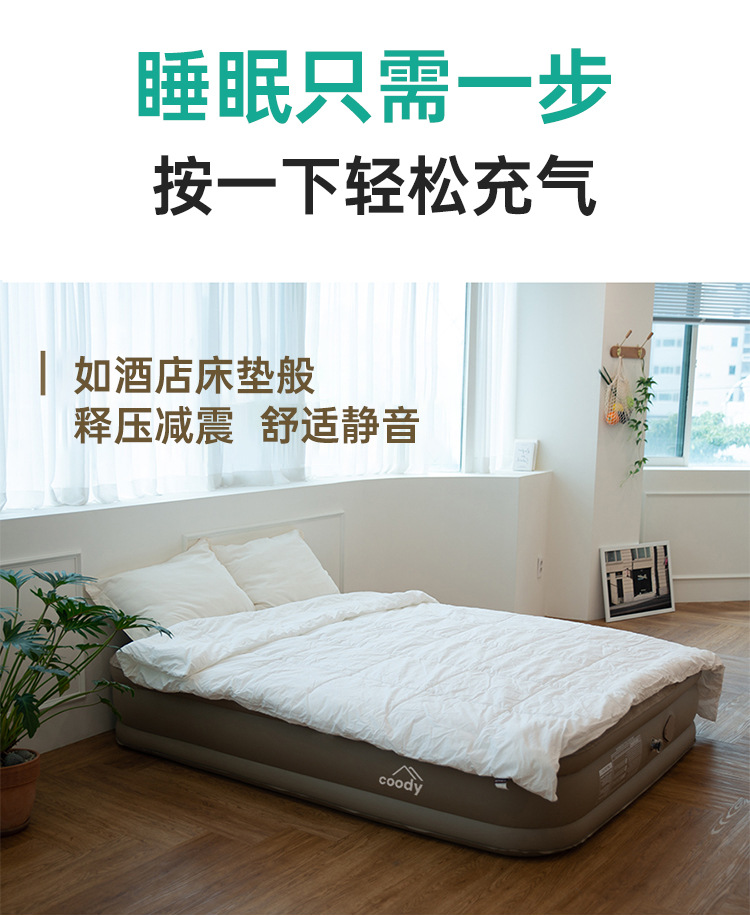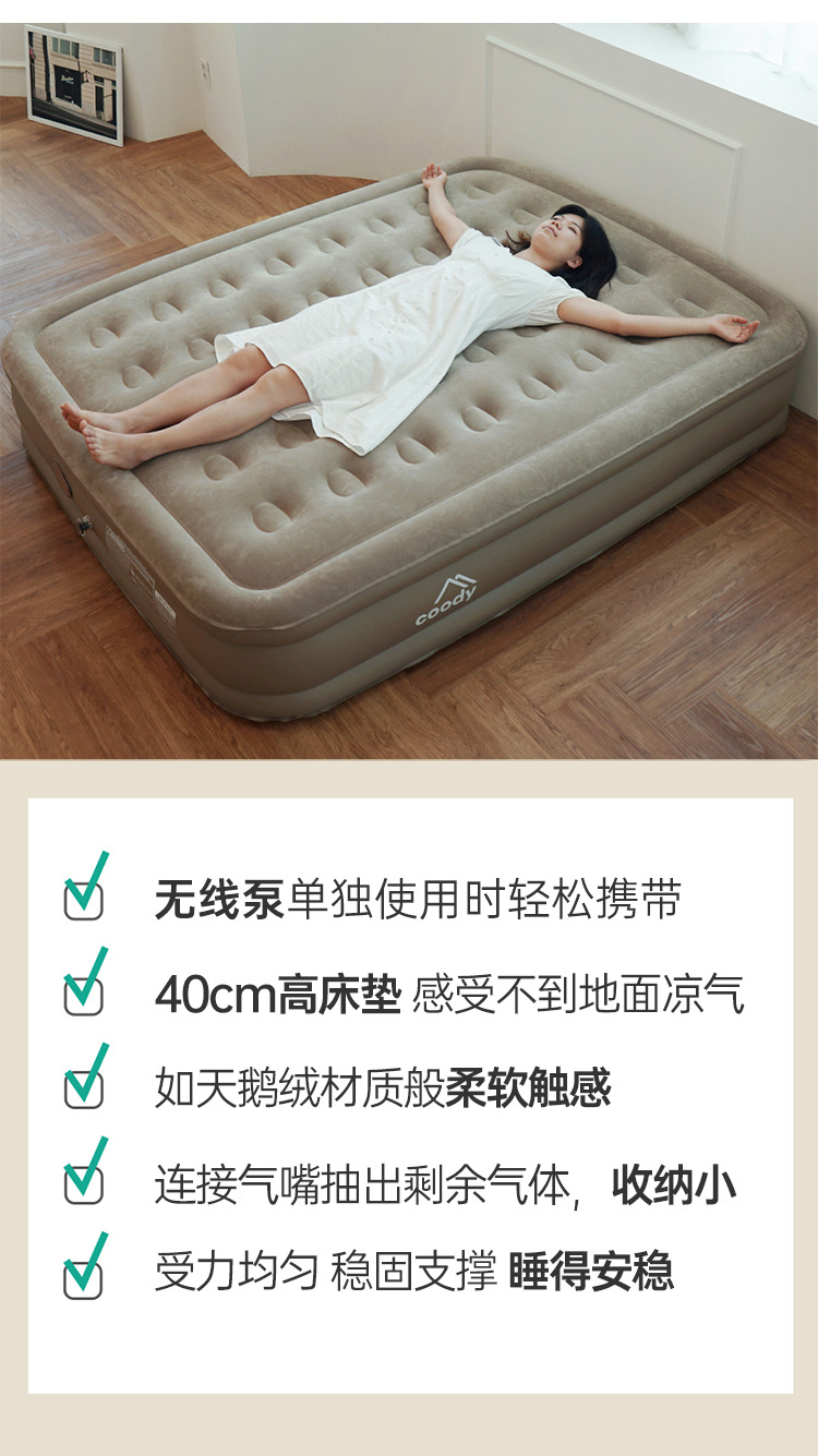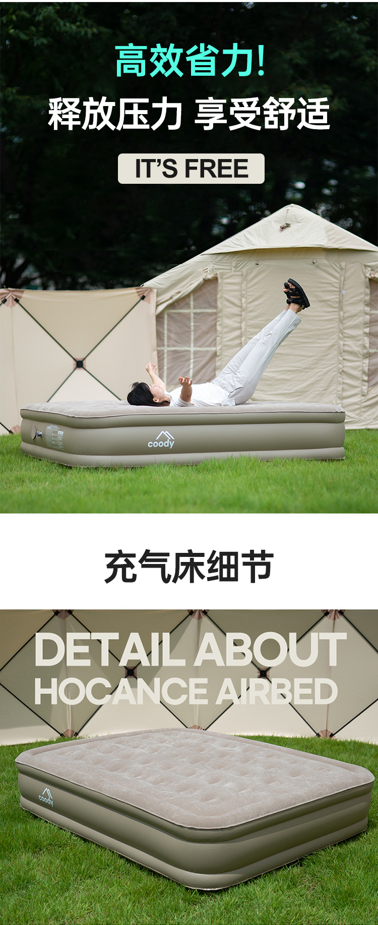 Kasur tiup otomatis Coody, alas tidur portabel untuk tenda camping, kasur udara ganda untuk tidur di luar ruangan