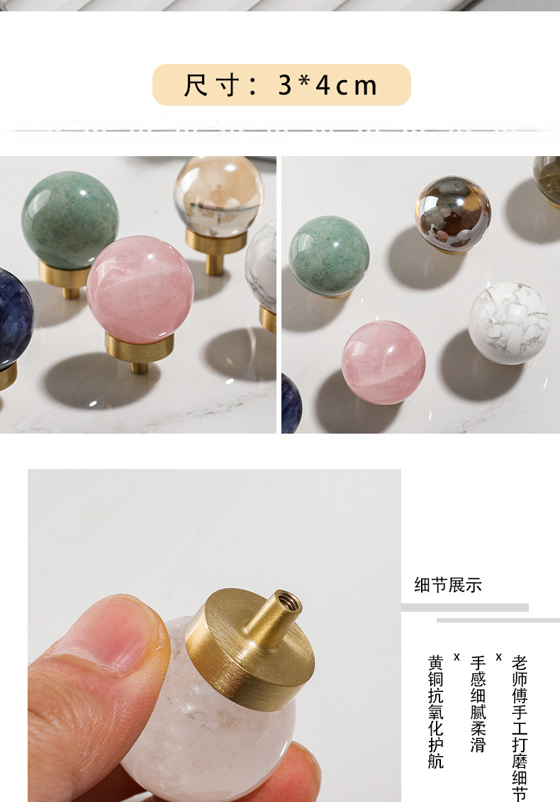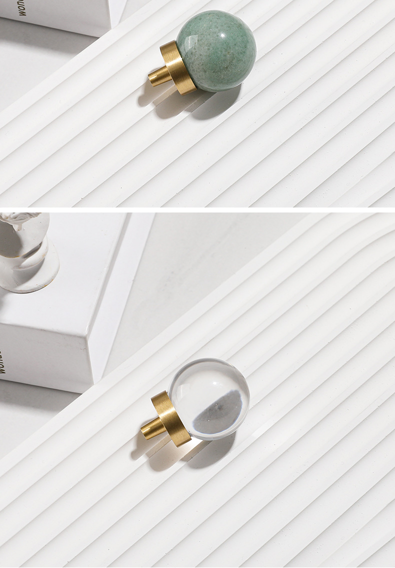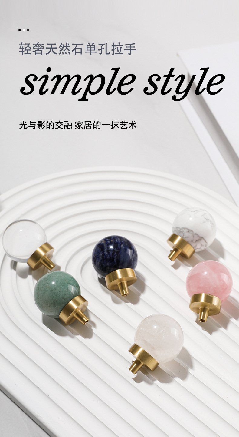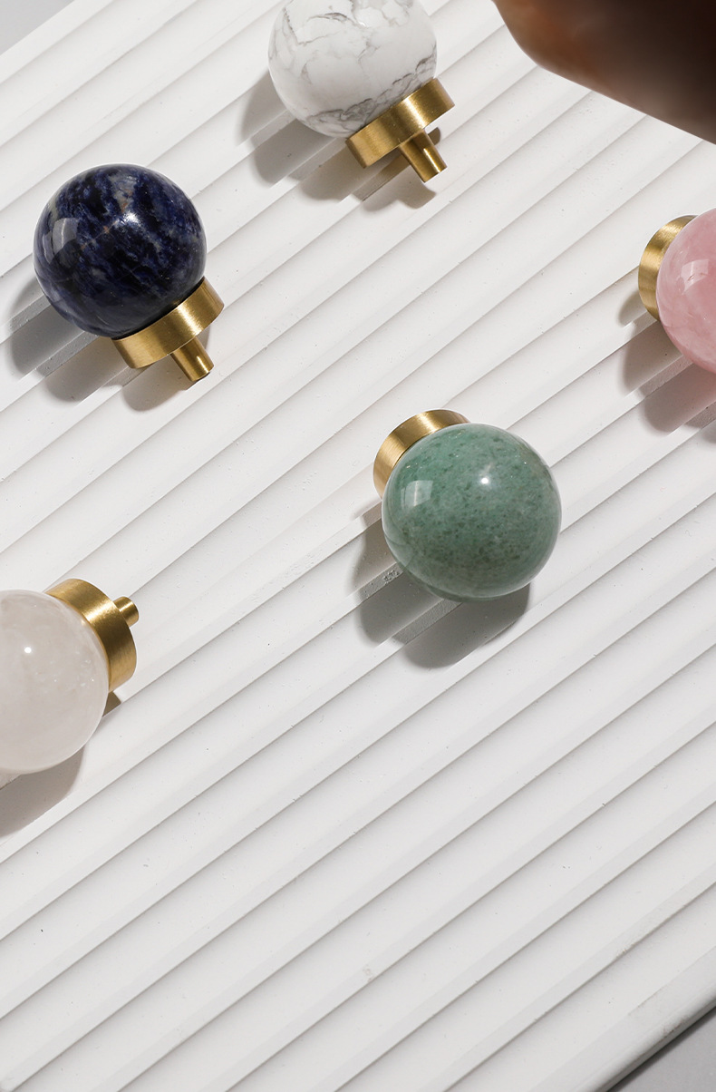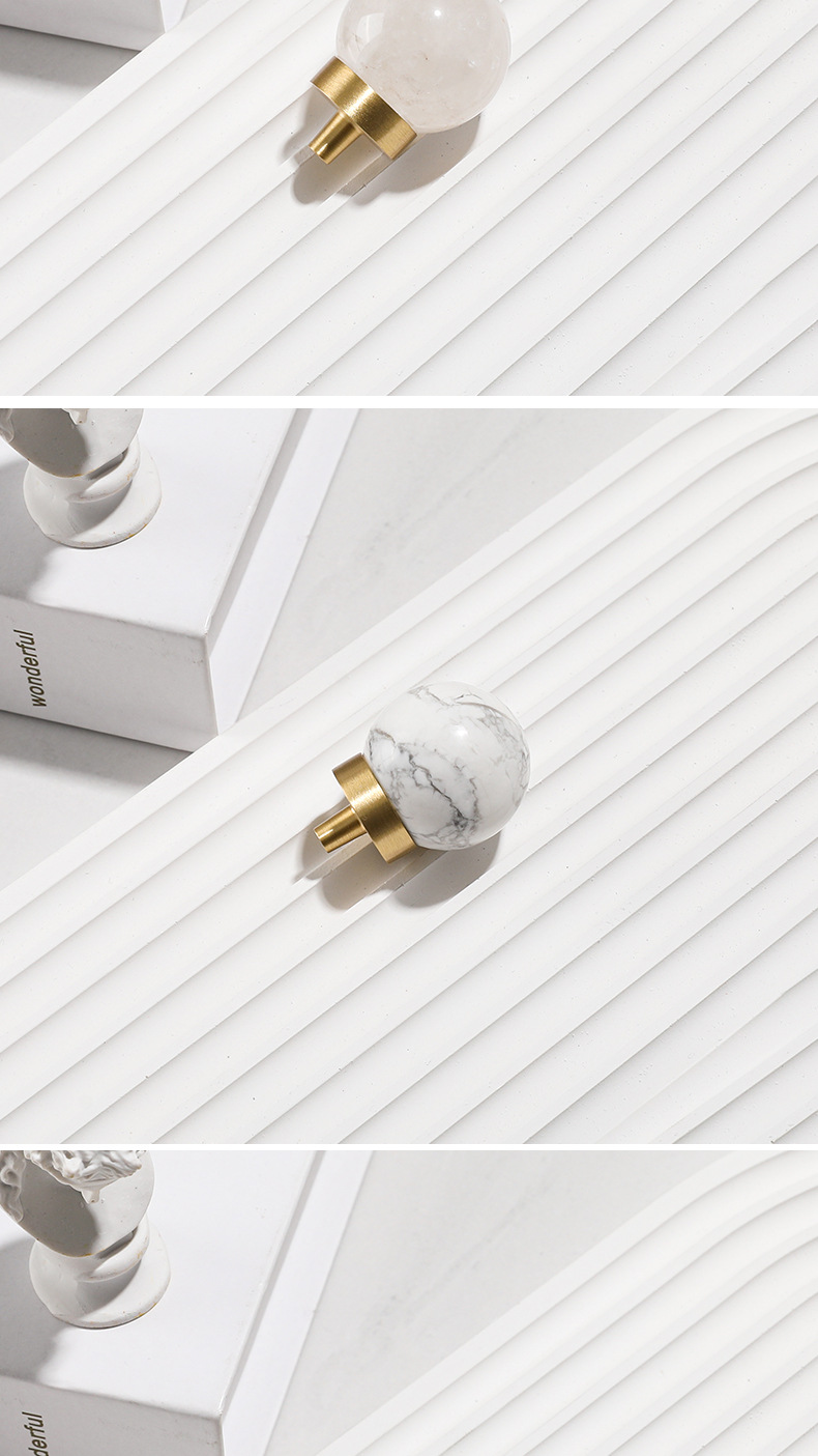 Batu alam kuningan pegangan furnitur bulat lemari anggur laci pintu pegangan gaya Nordic putih lubang tunggal pegangan kecil grosir