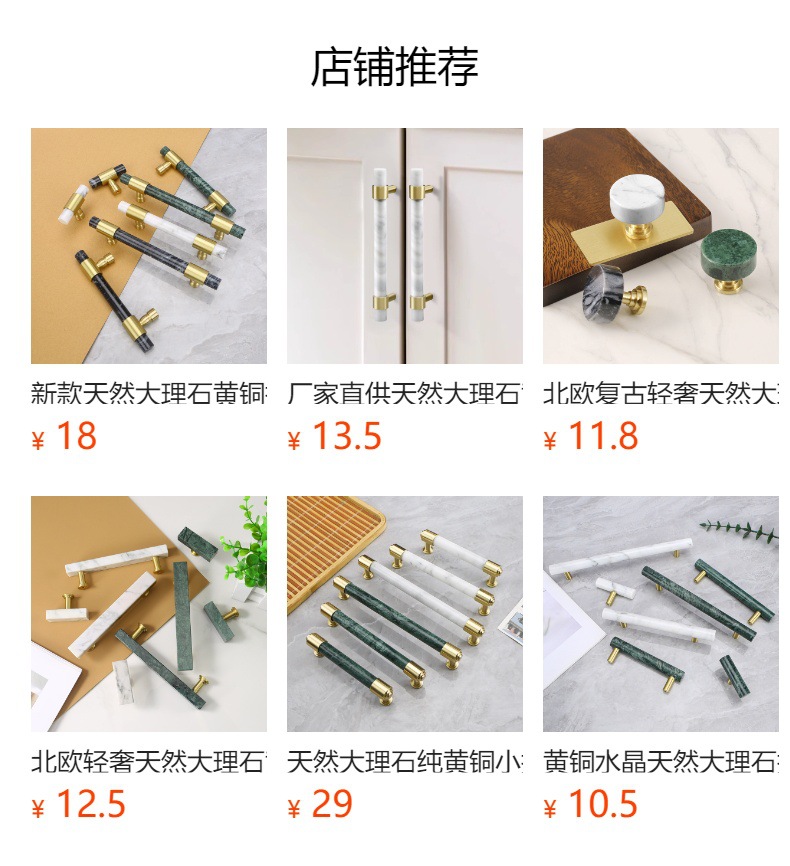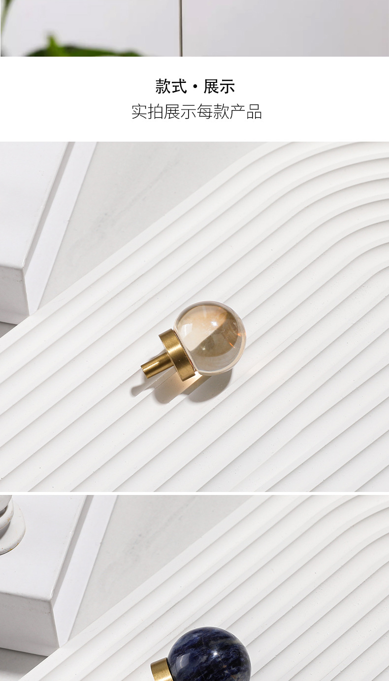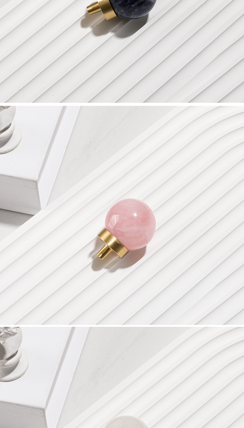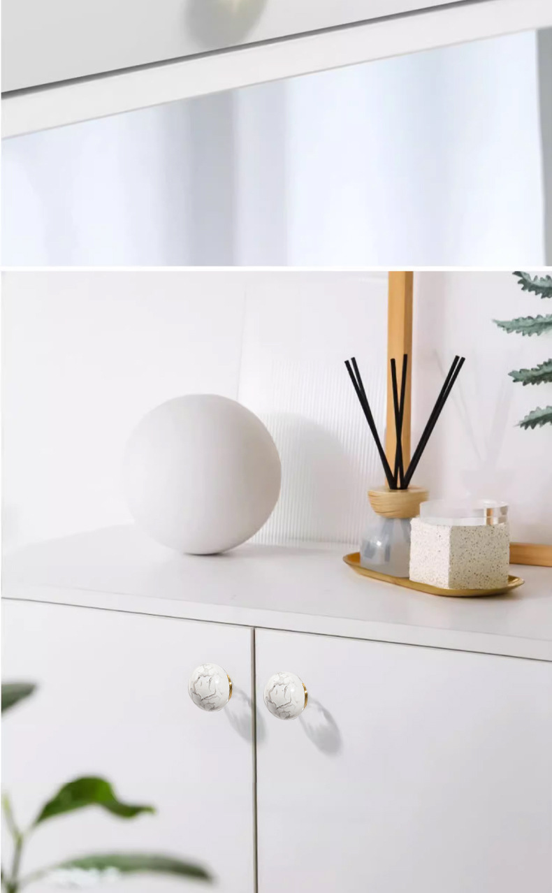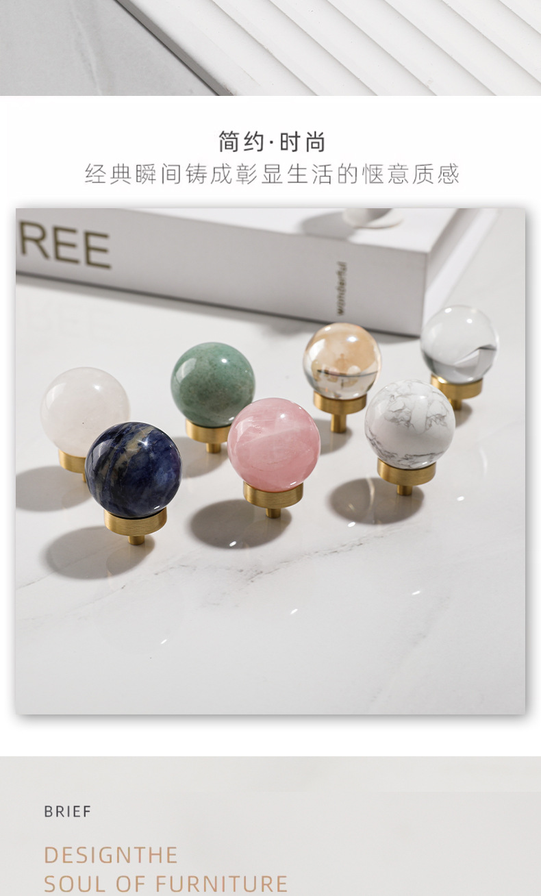 Batu alam kuningan pegangan furnitur bulat lemari anggur laci pintu pegangan gaya Nordic putih lubang tunggal pegangan kecil grosir