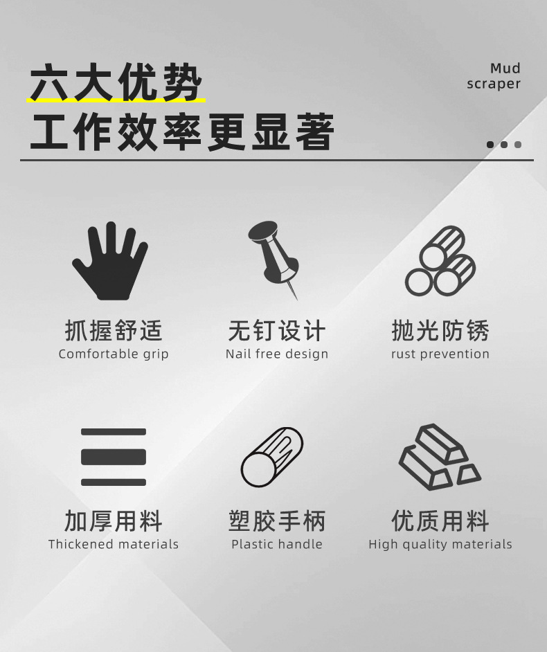 Sekop datar dengan gagang plastik, sekop plester baja tahan karat, sekop lumpur diatomit, grosir kustom, dempul perata khusus teknik.