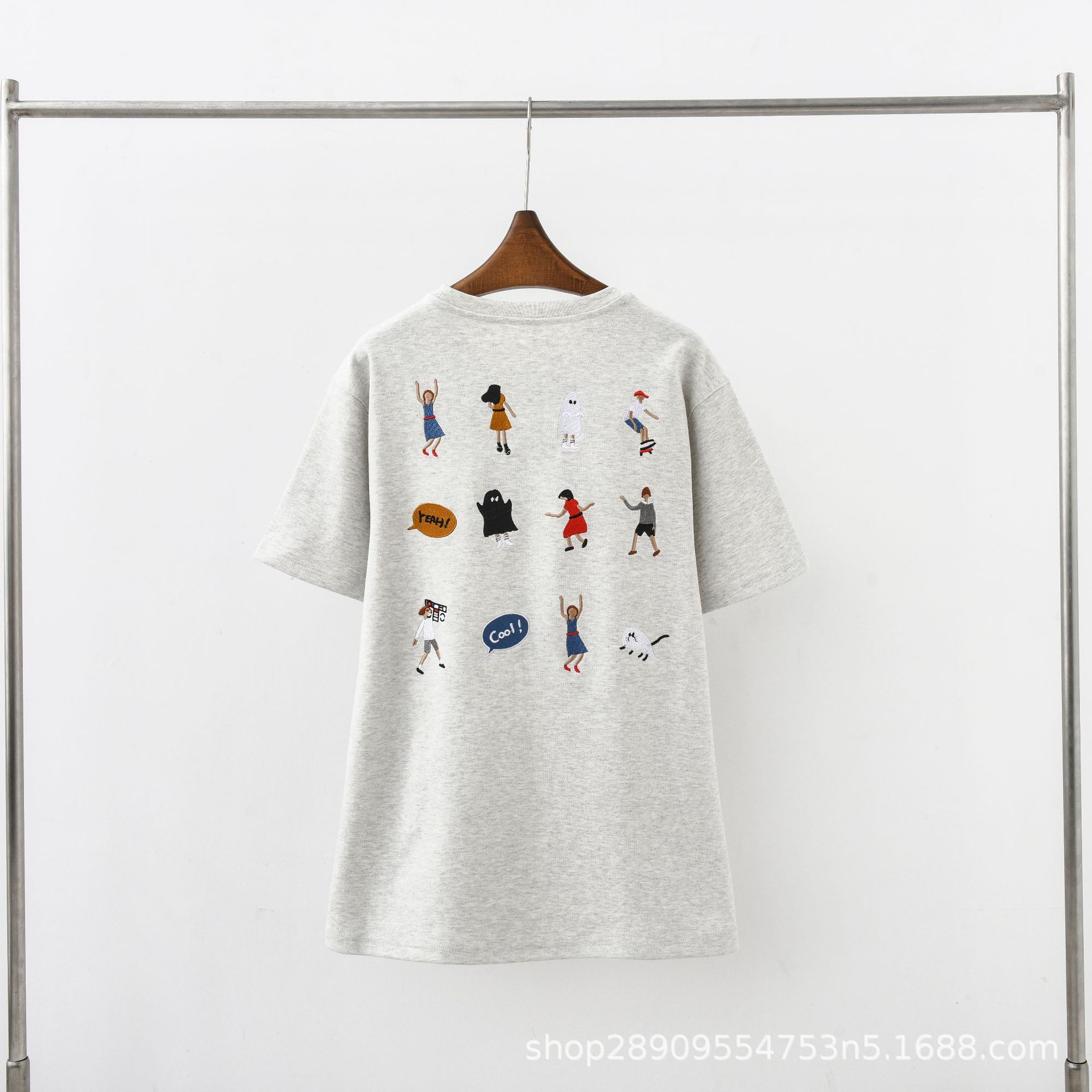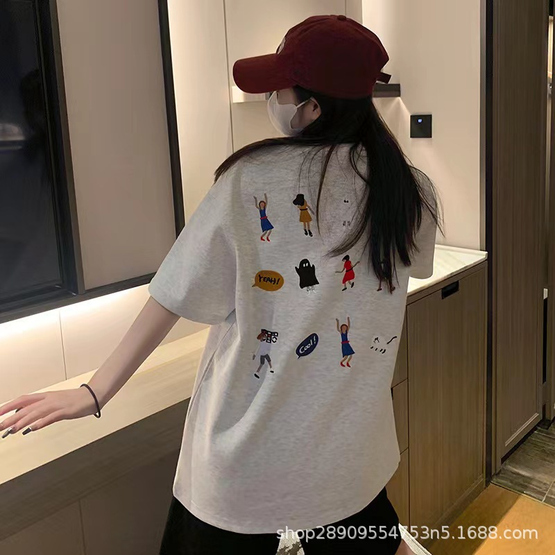 Kaus pasangan pria dan wanita atasan longgar kartun villain bordir belakang baru musim gugur 2023 versi Tinggi