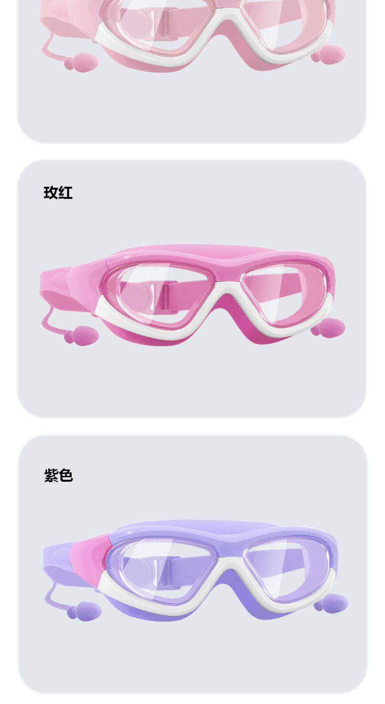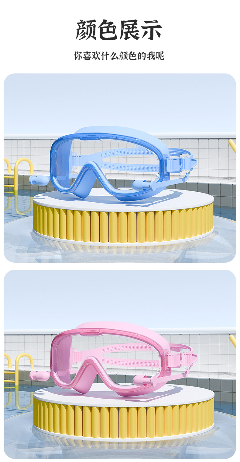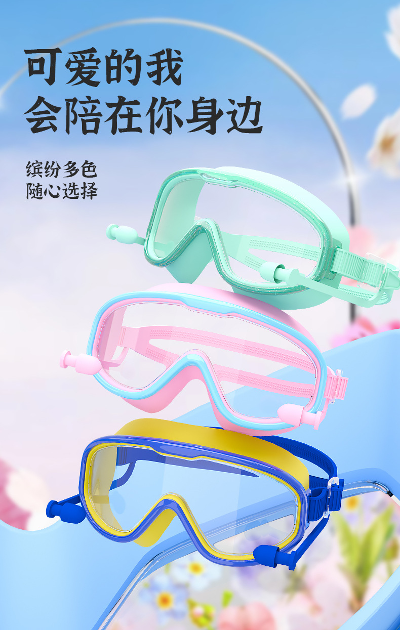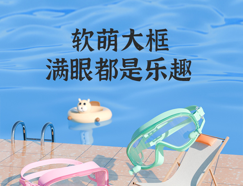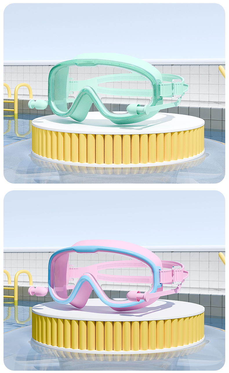Kacamata renang anak perempuan, bingkai besar tahan air anti-kabut HD transparan kacamata renang bayi