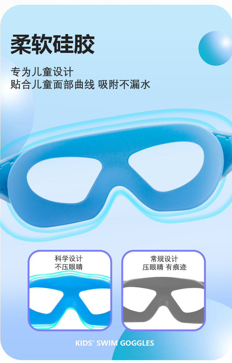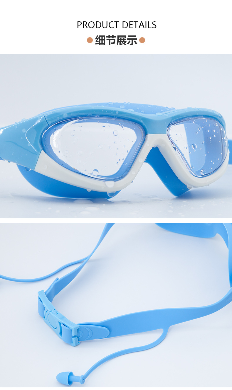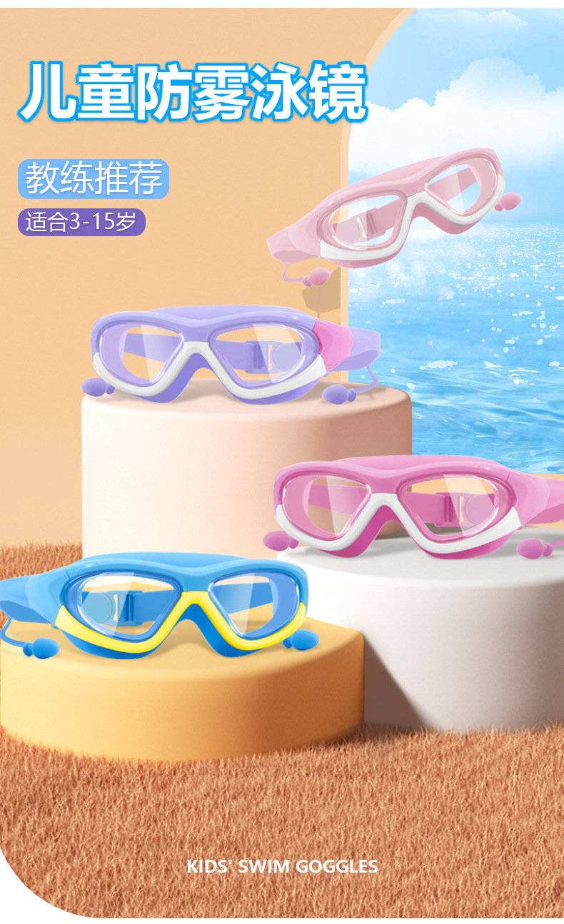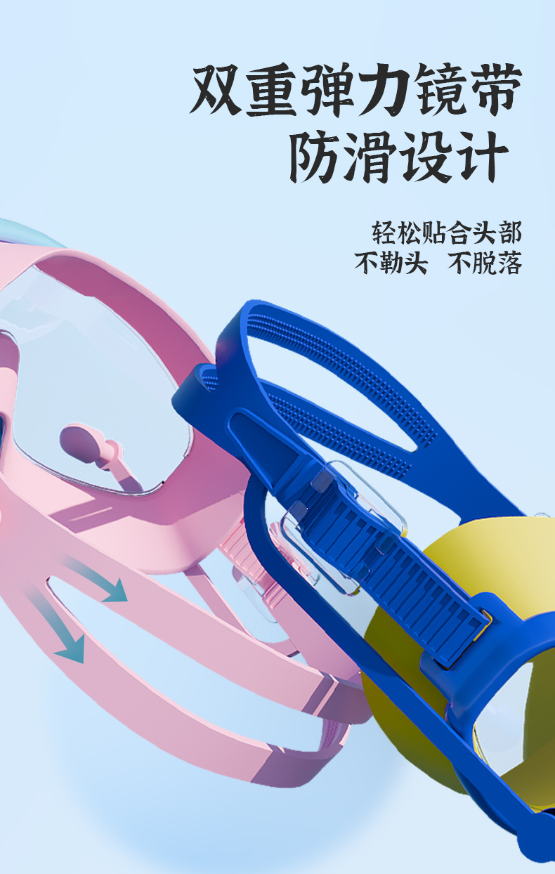 Kacamata renang anak perempuan, bingkai besar tahan air anti-kabut HD transparan kacamata renang bayi
