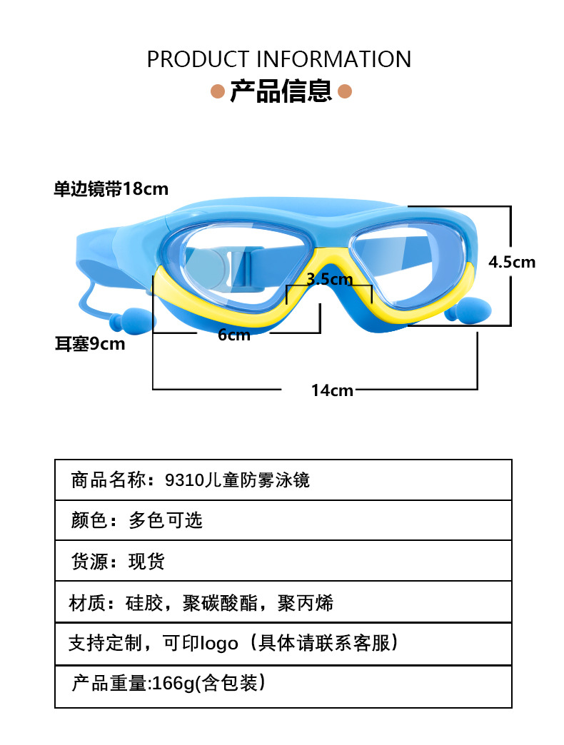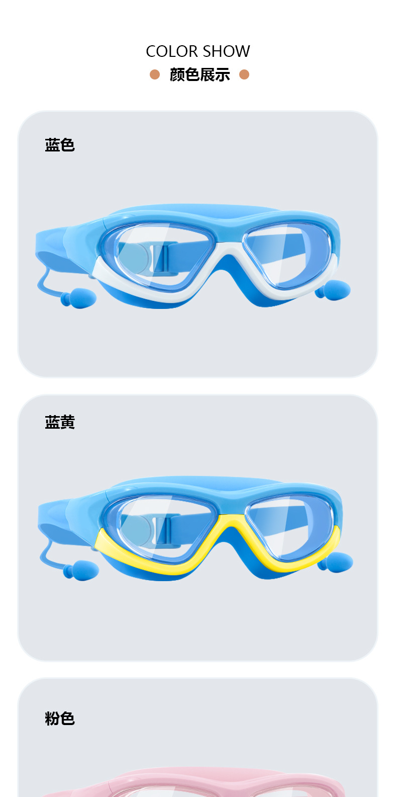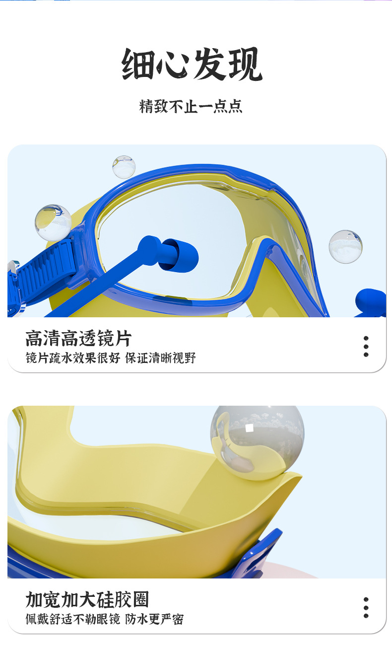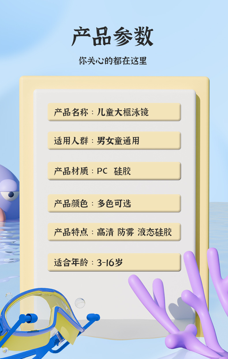 Kacamata renang anak perempuan, bingkai besar tahan air anti-kabut HD transparan kacamata renang bayi
