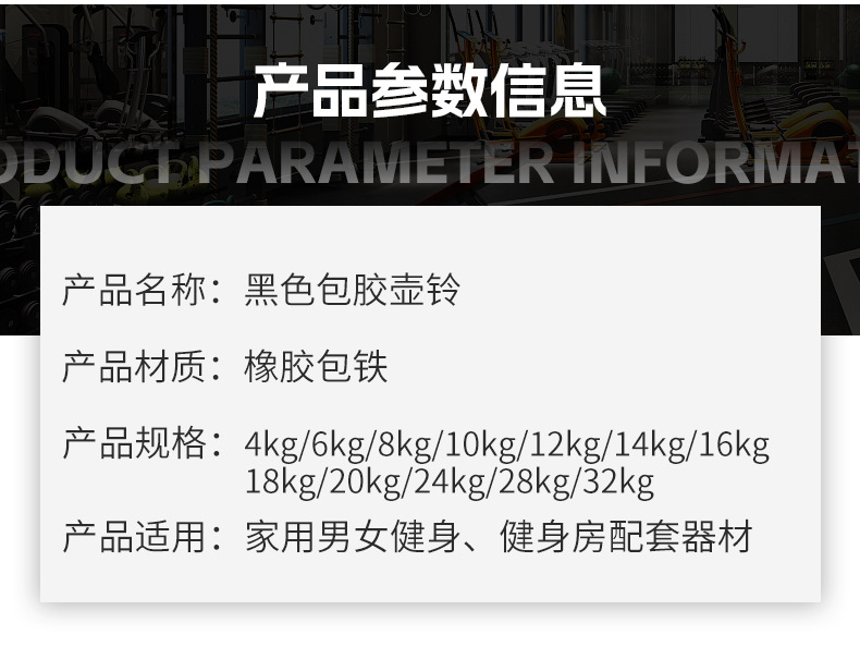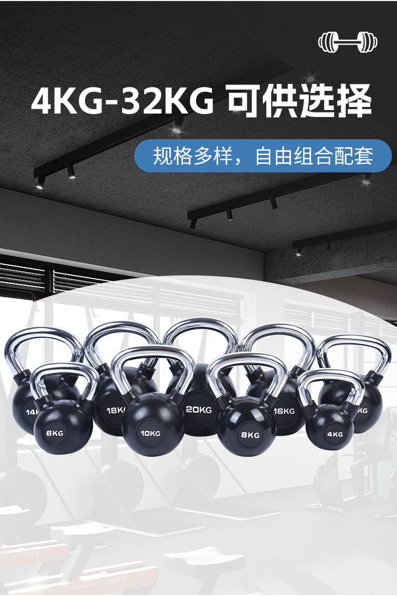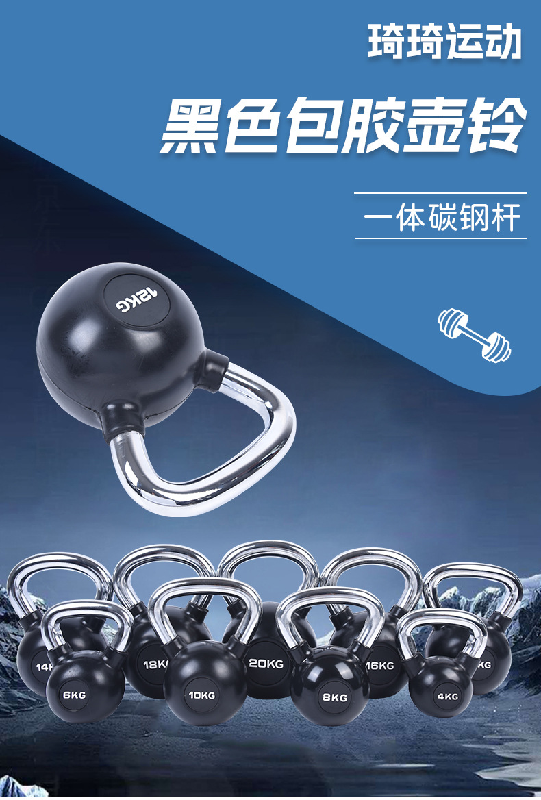Bel ketel lapisan plastik hitam, panci pengangkat bel rumah gym rumah, Ketel lapis plastik 4/8/10/16/24KG