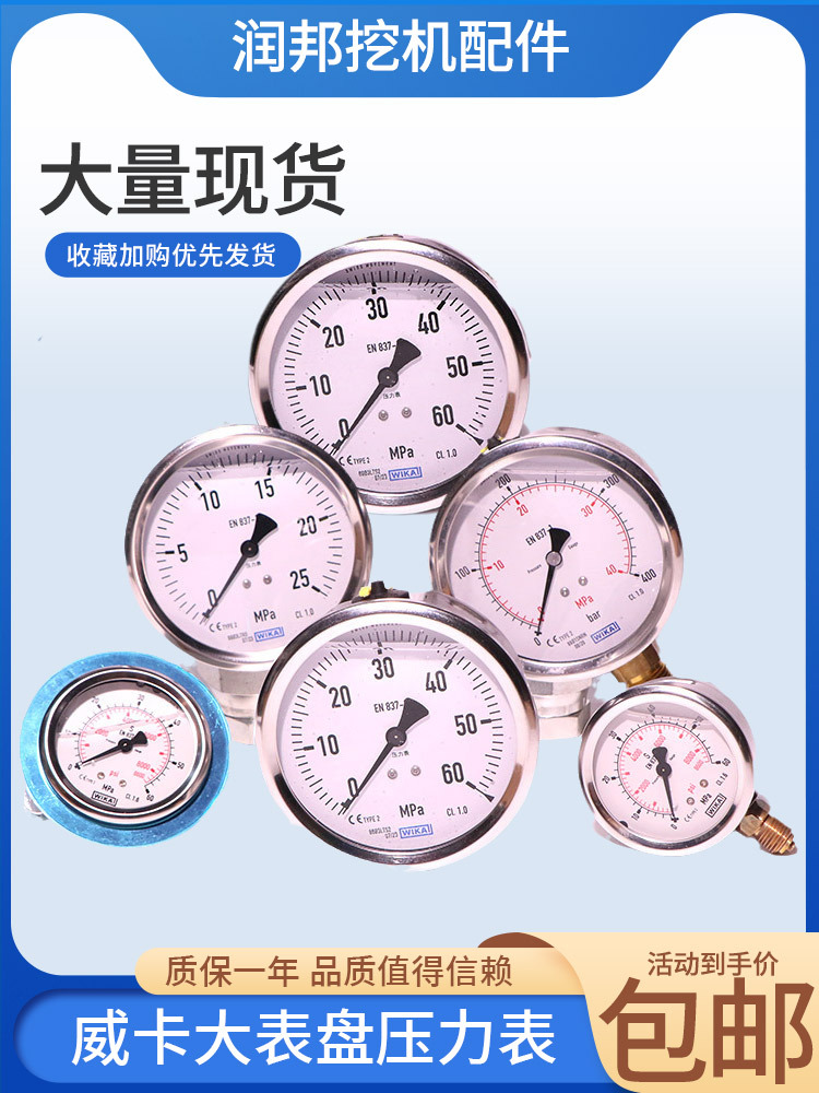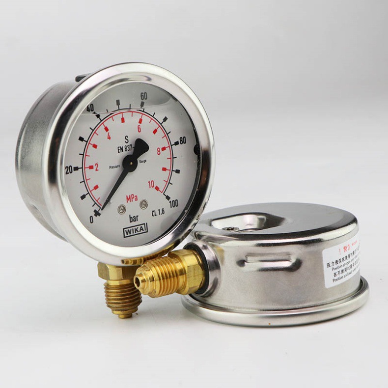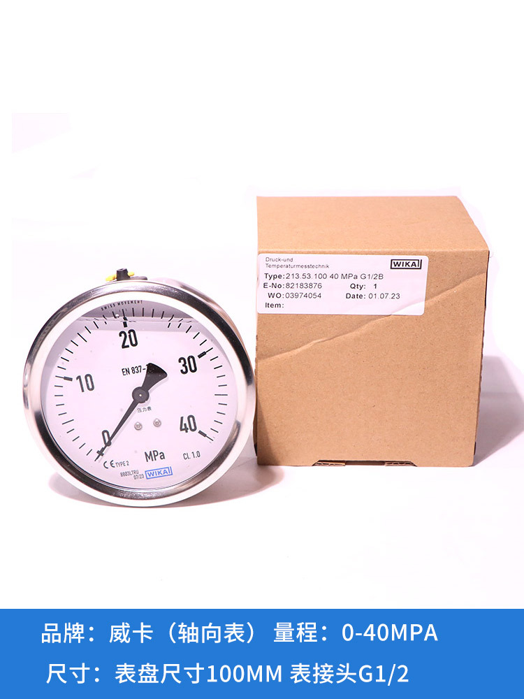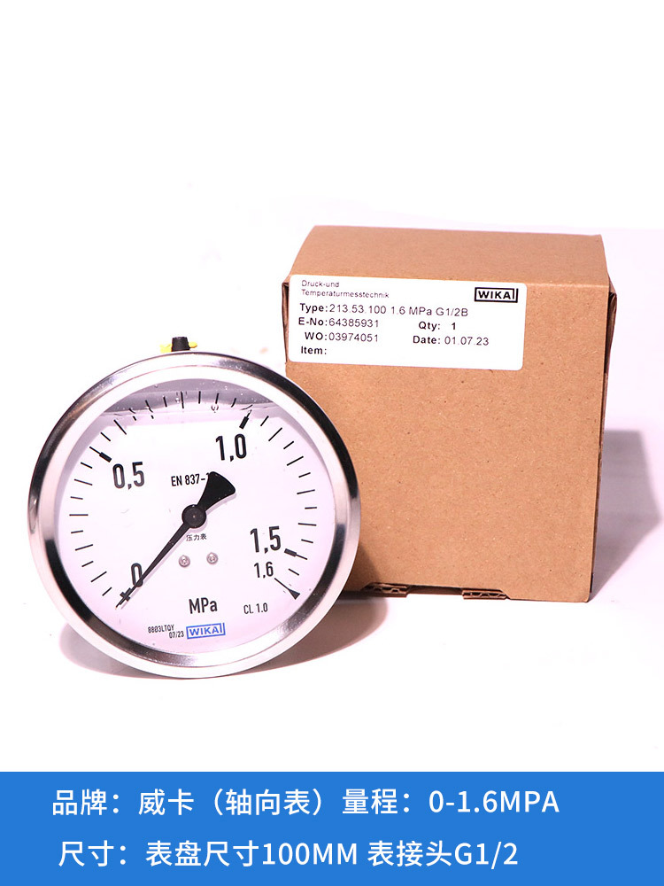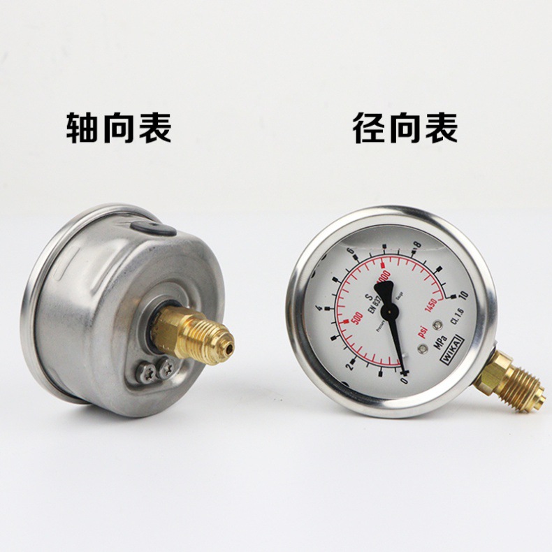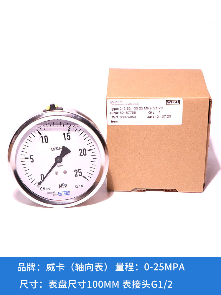 Pengukur tekanan WIKA impor Jerman, pengukur vakum aksial, pengukur tekanan stainless steel, EN837-1 anti guncangan