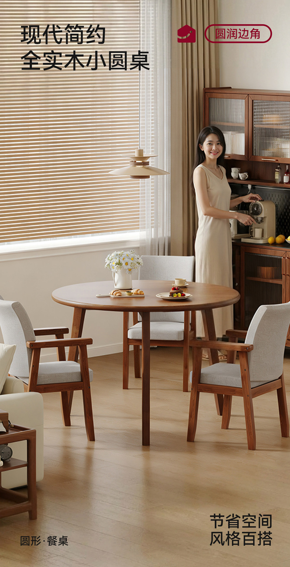 Meja bundar kecil kayu polos, meja makan rumah apartemen kecil dan kursi kombinasi balkon meja kopi modern sederhana negosiasi meja teh