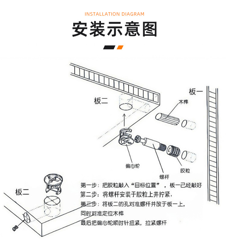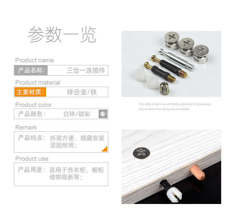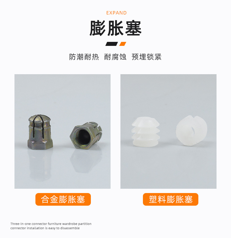 Dipertebal tiga-dalam-satu konektor sekrup roda eksentrik mur kayu Tenon konektor furnitur pemosisian batang besi ekspansi Aloi