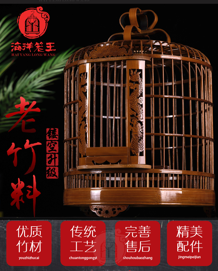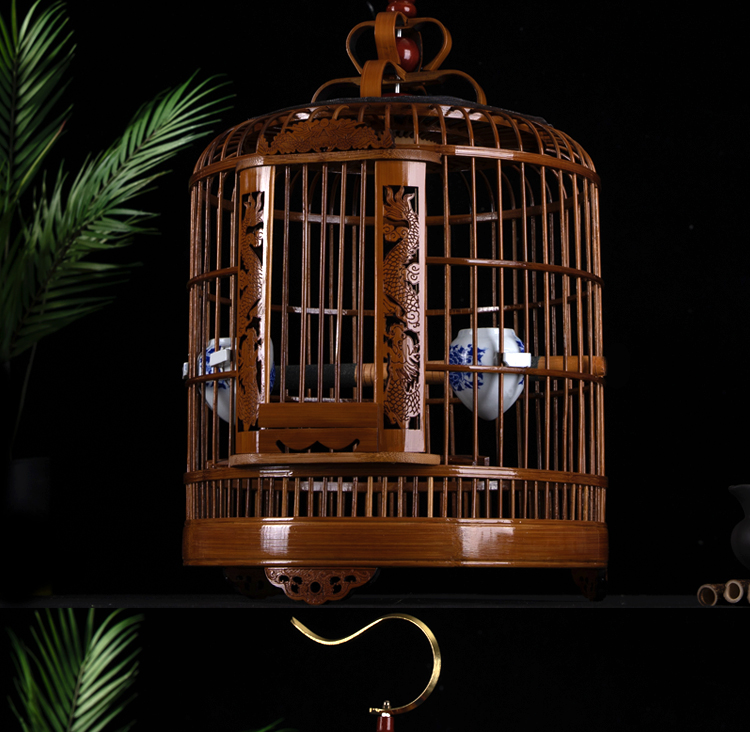 Kandang burung laut, kandang burung ini tua dari bambu, set lengkap butik Big Brother, sangkar burung bambu besar buatan tangan berongga berukir