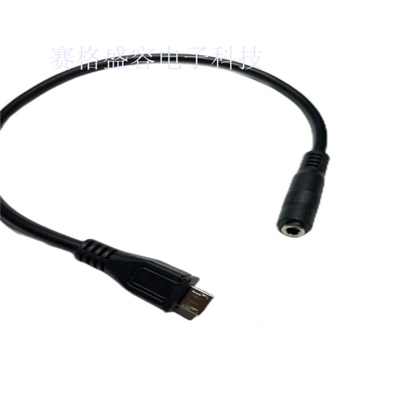 Kabel data audio microUSB male ke DC3.5 female grosir dari pabrik, inti tembaga penuh, kontrol jalur, transmisi stabil