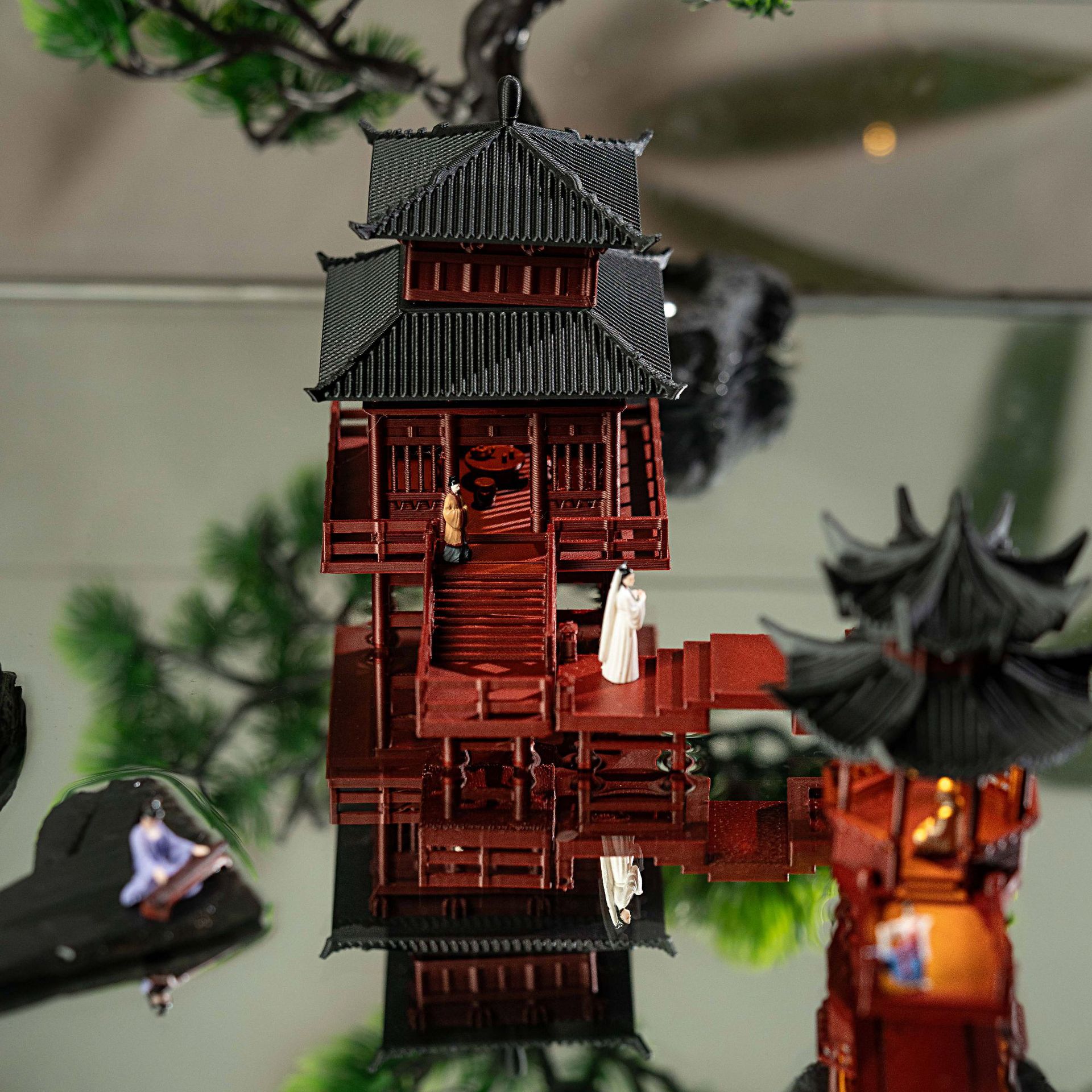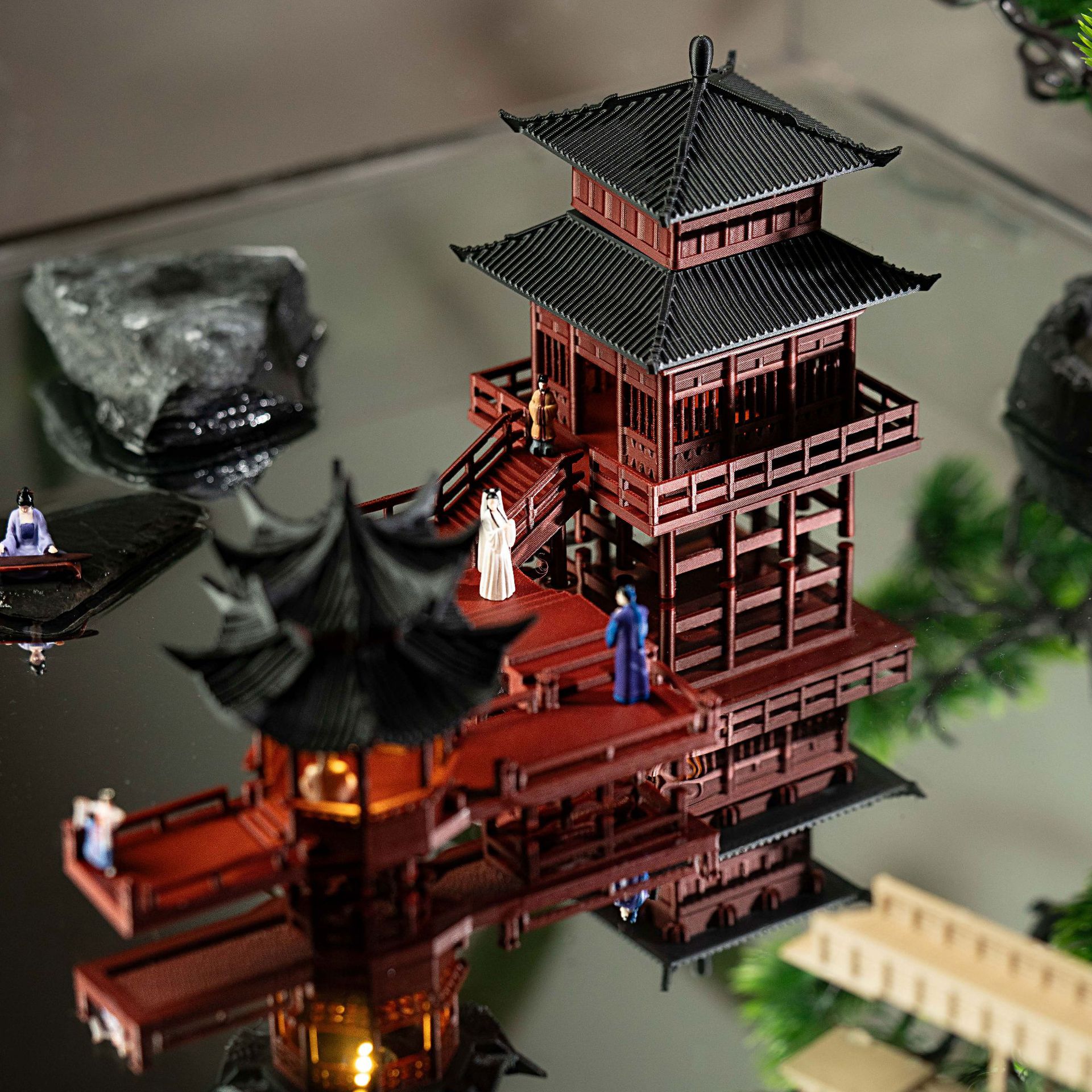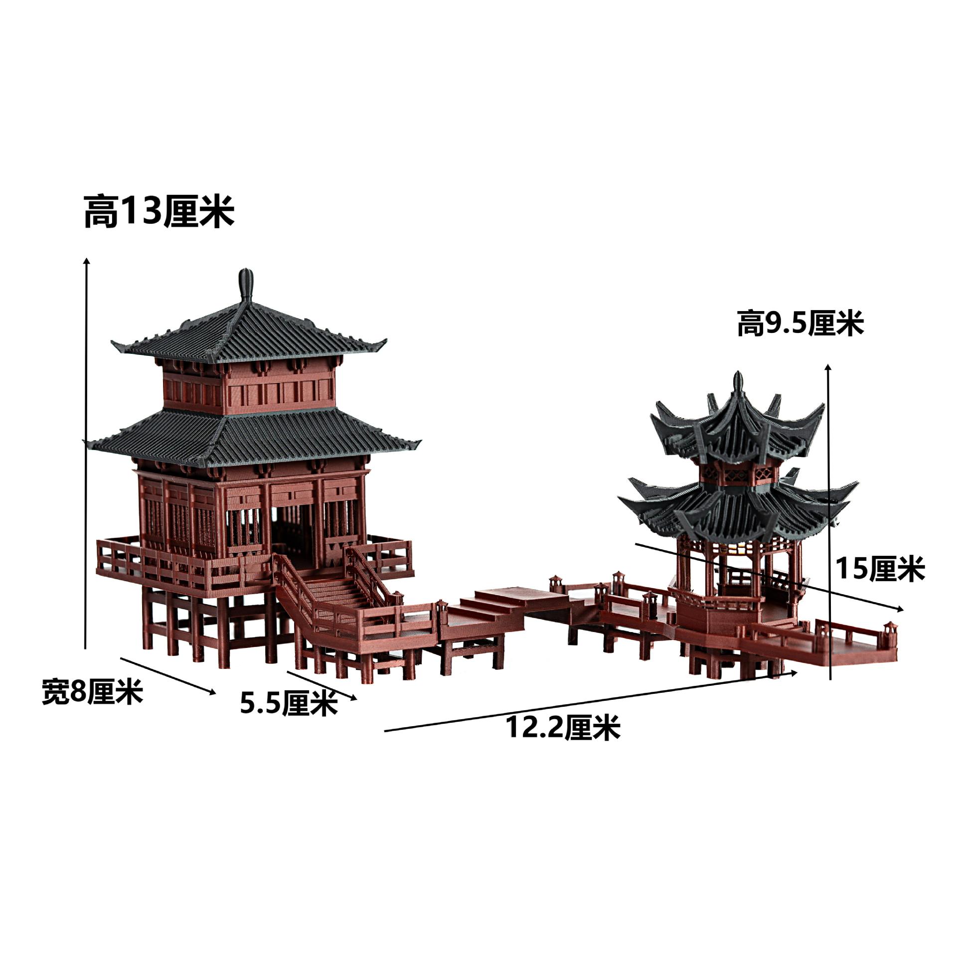 Set Lengkap Ornamen Kecil Kabin Dengan Lampu Batu Batu Penyerap Air Tangki Tanah Mikro-Lansekap Halaman Bonsai Model Arsitektur Kuno Tiongkok