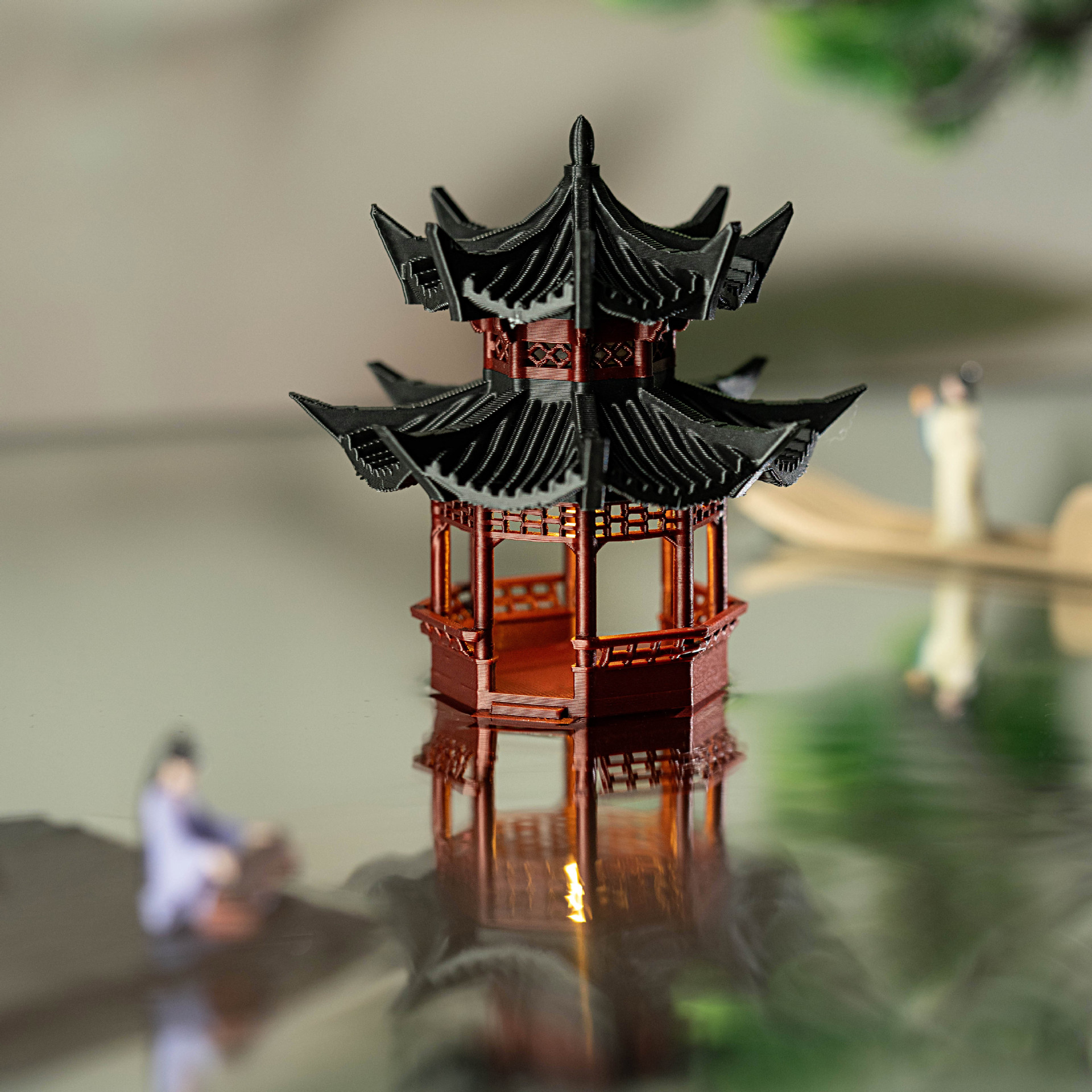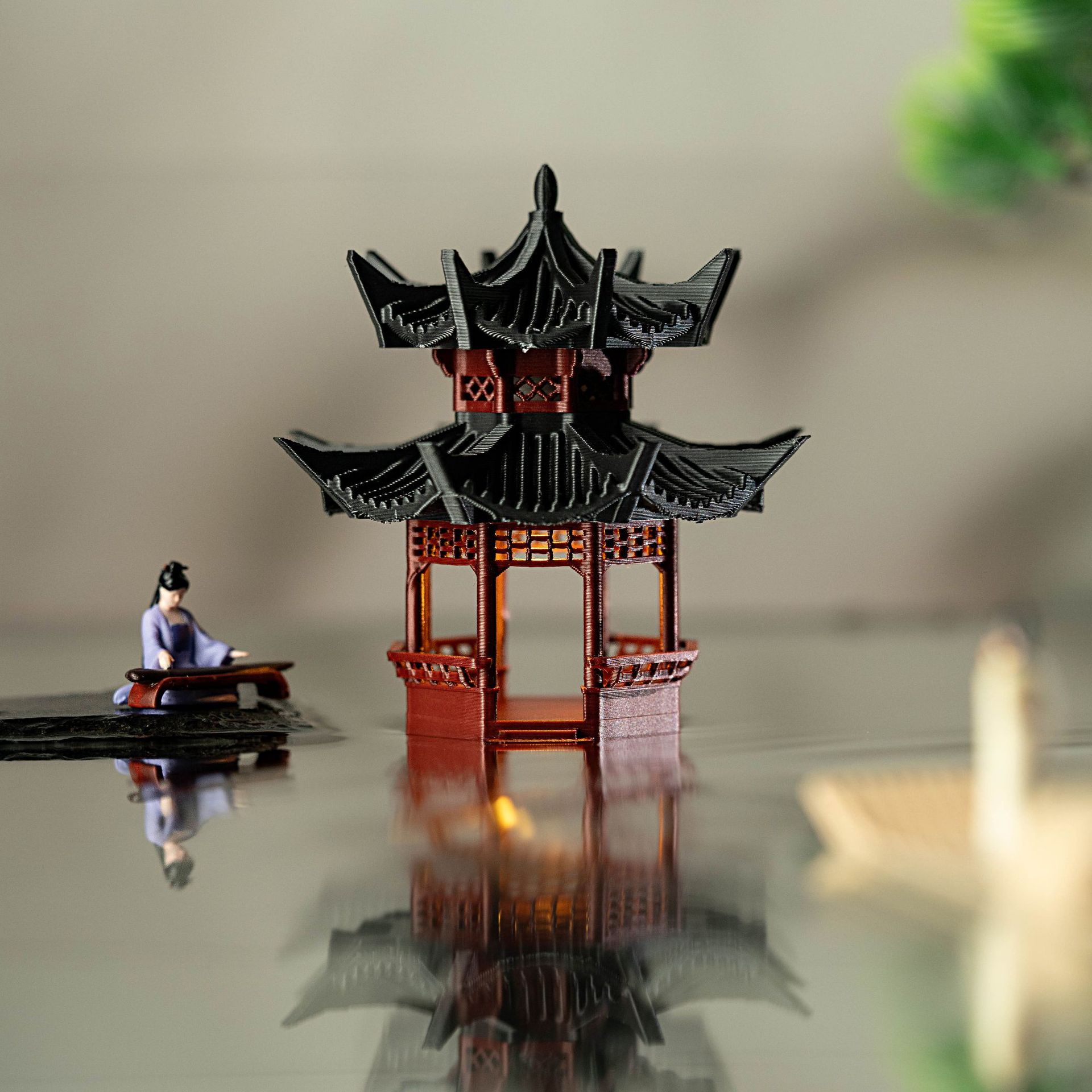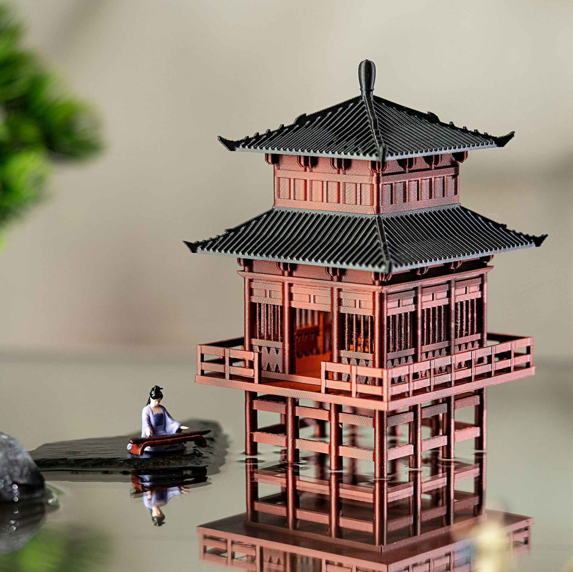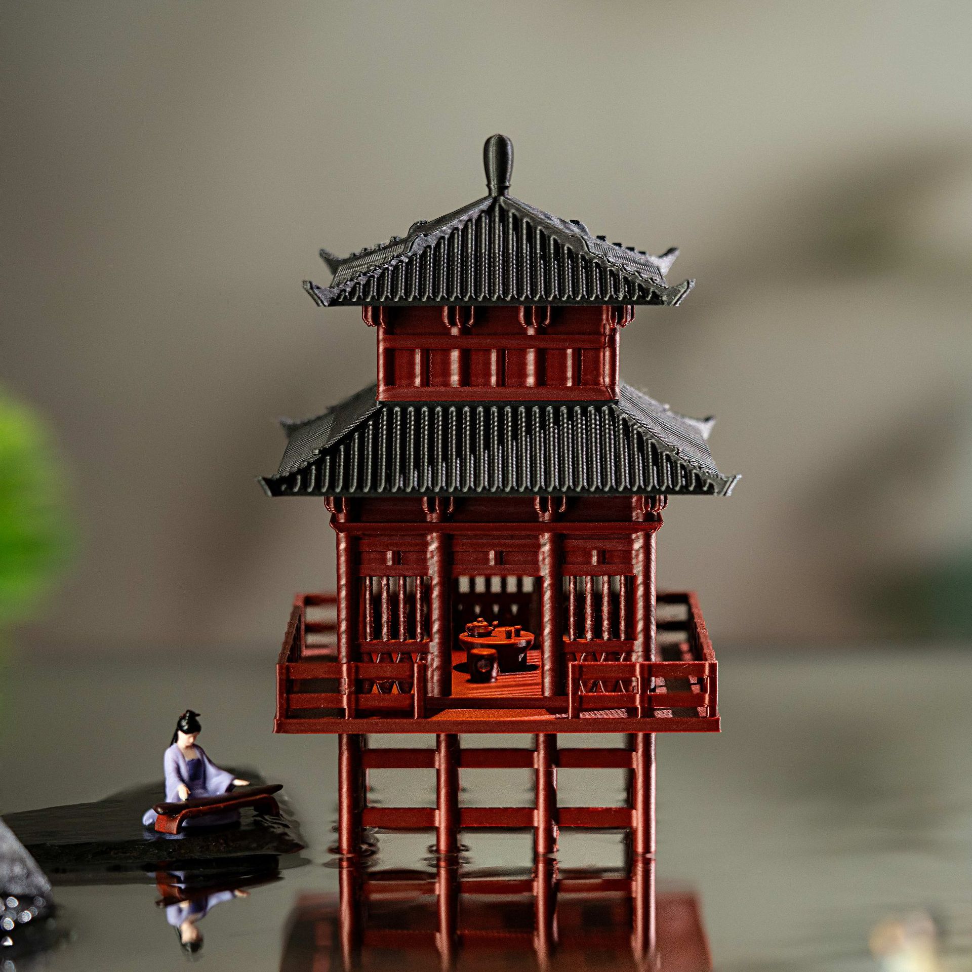 Set Lengkap Ornamen Kecil Kabin Dengan Lampu Batu Batu Penyerap Air Tangki Tanah Mikro-Lansekap Halaman Bonsai Model Arsitektur Kuno Tiongkok