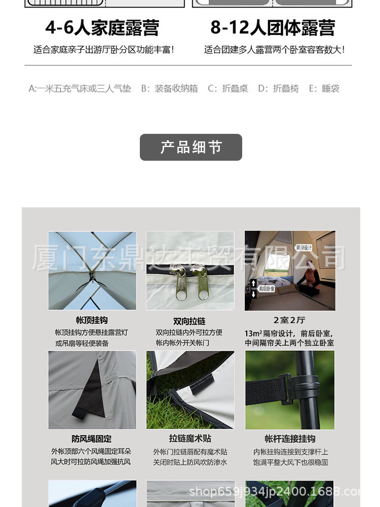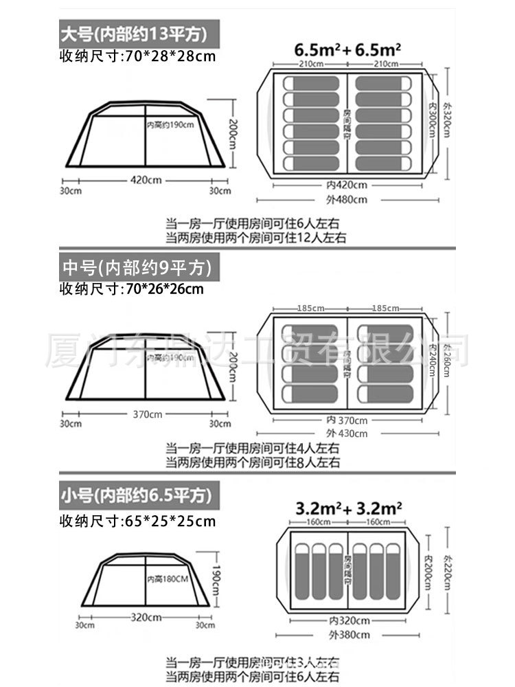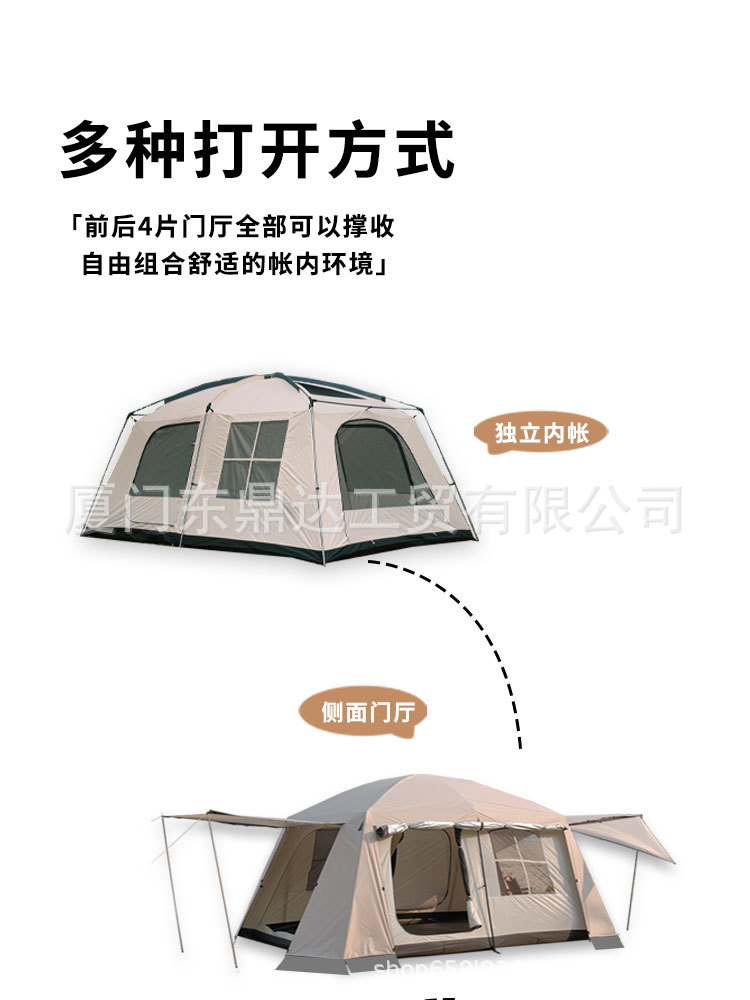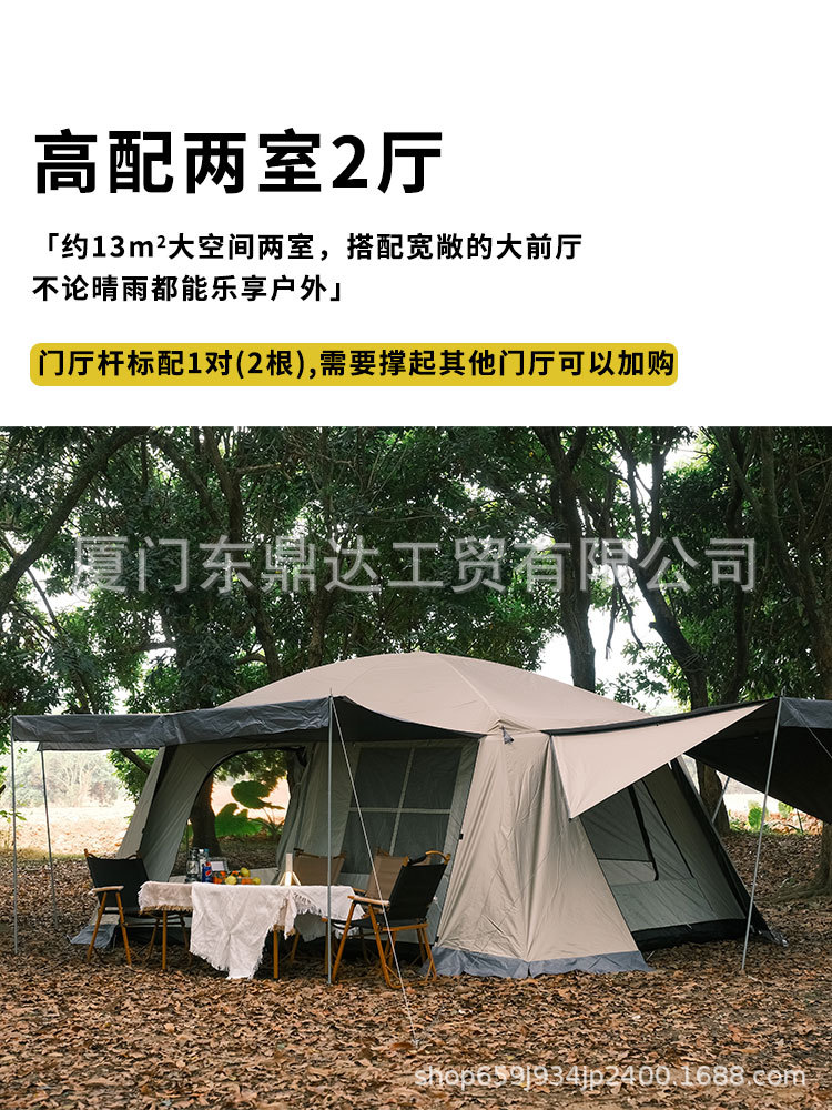 Tenda luar ruangan dua kamar tidur, tenda berkemah Grup multi orang dua kamar tidur dua ruang tamu