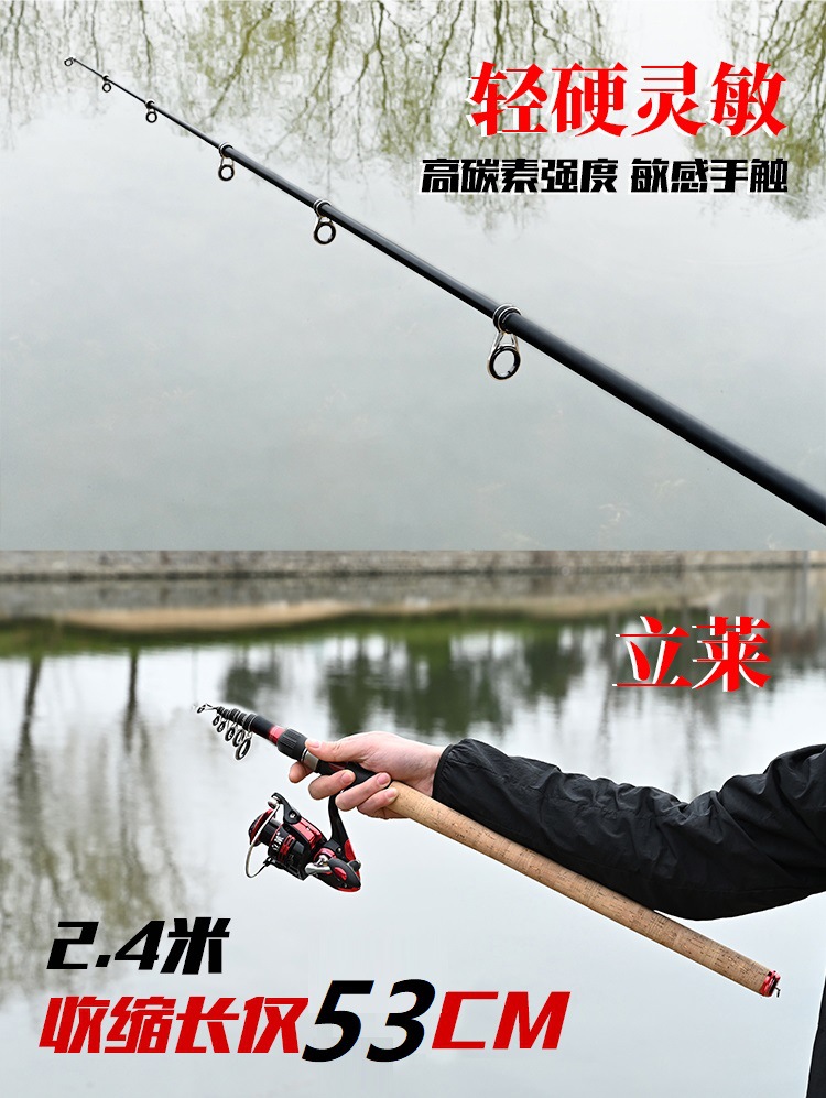 Lilai tiang Luya, pegangan lurus karbon menyusut 2.0-2.7 m bagian pendek Universal H super keras dapat disesuaikan Lei Qiang jangkar ikan tongkat laut