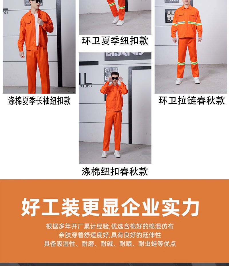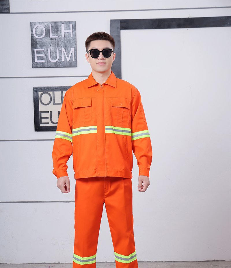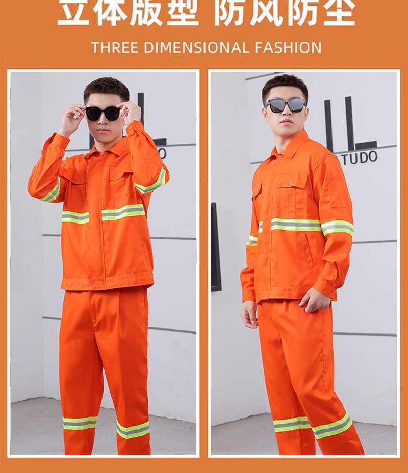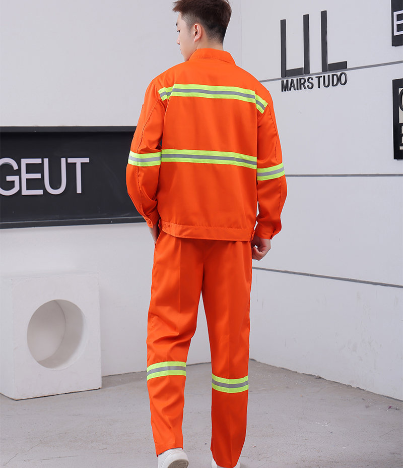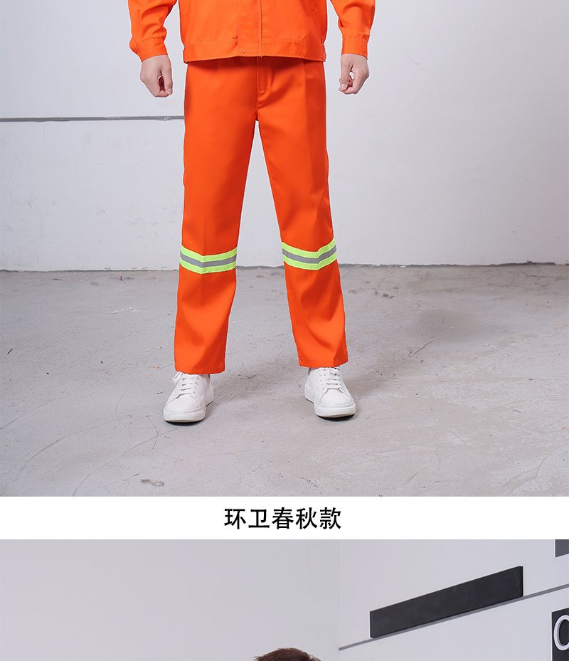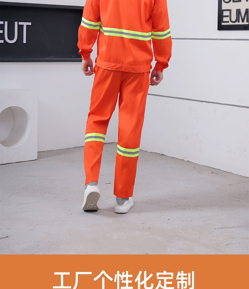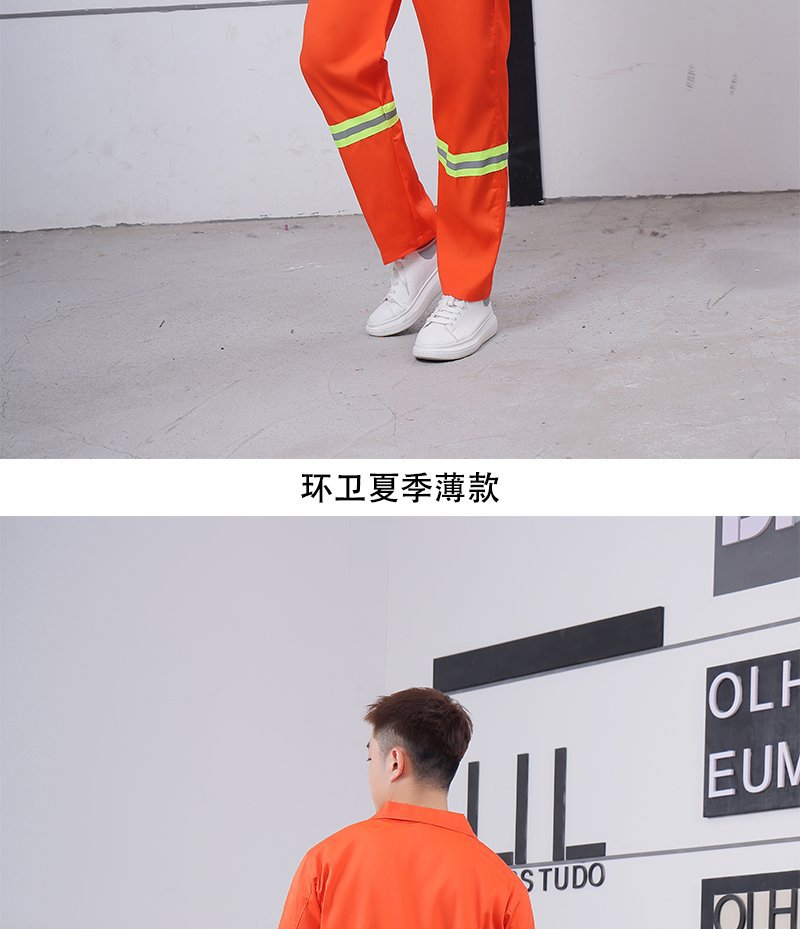 Baju kerja sanitasi musim panas kancing poliester setelan katun konstruksi kota pemeliharaan pembersihan jalan raya strip reflektif hijau