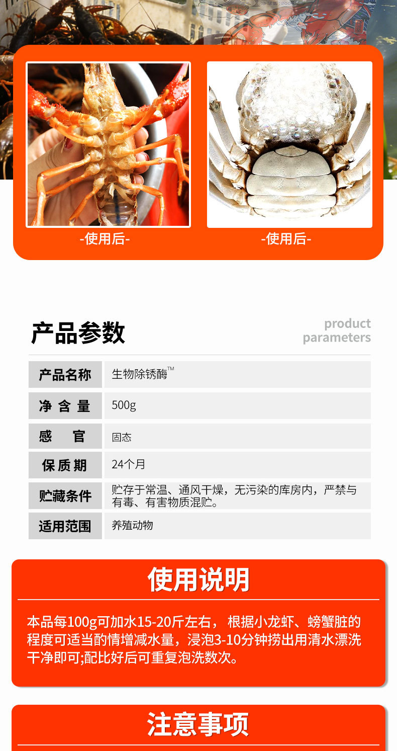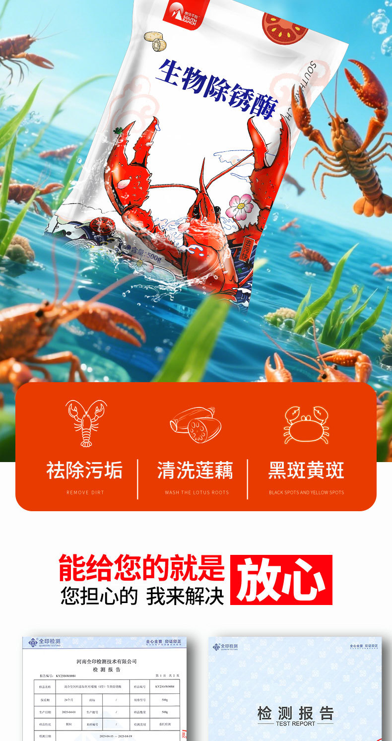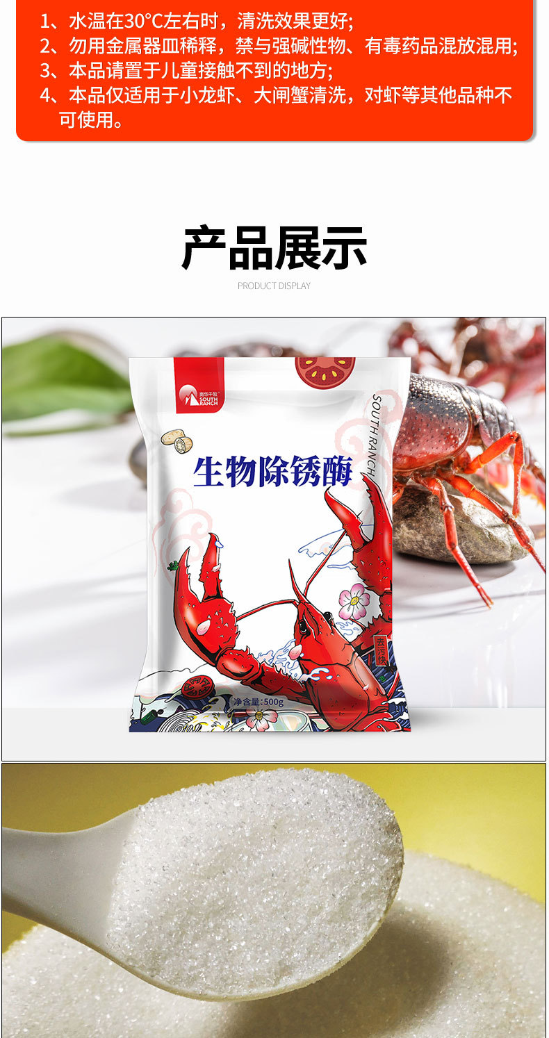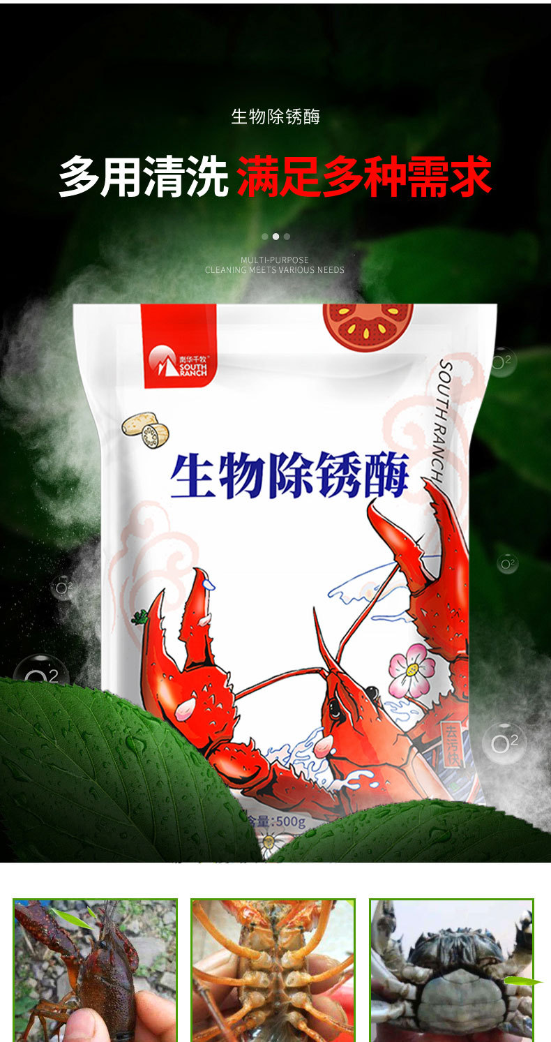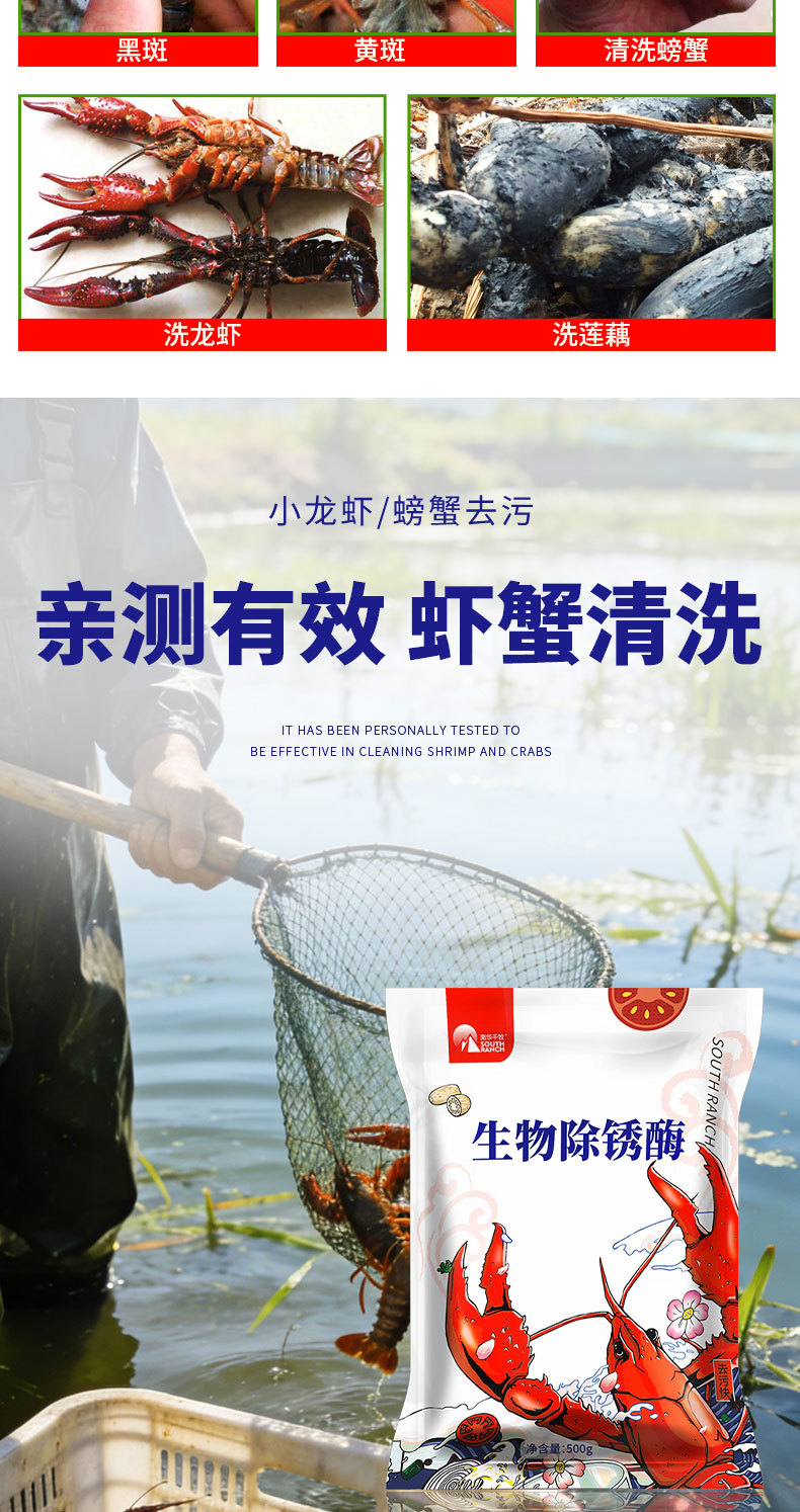 Nanhua Qianmu bubuk pencuci udang kepiting, cangkang hitam crayfish cuci Akar lotus dekontaminasi krayfish bubuk Pembersih Enzim derusting biologi