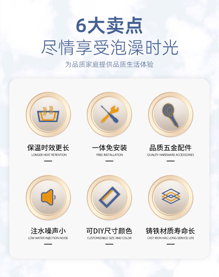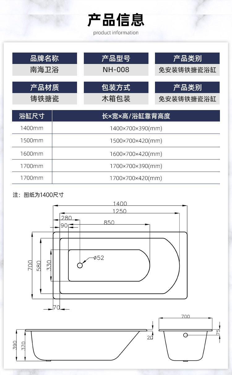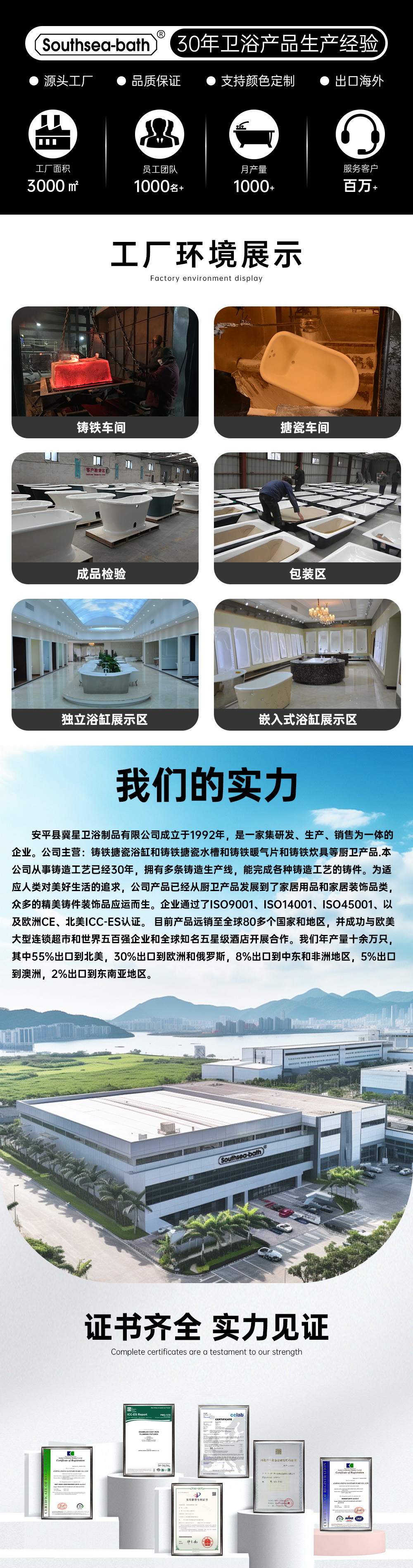 Nanhai bak mandi besi cor enamel, bak mandi Jepang tanam biasa untuk kamar mandi dewasa