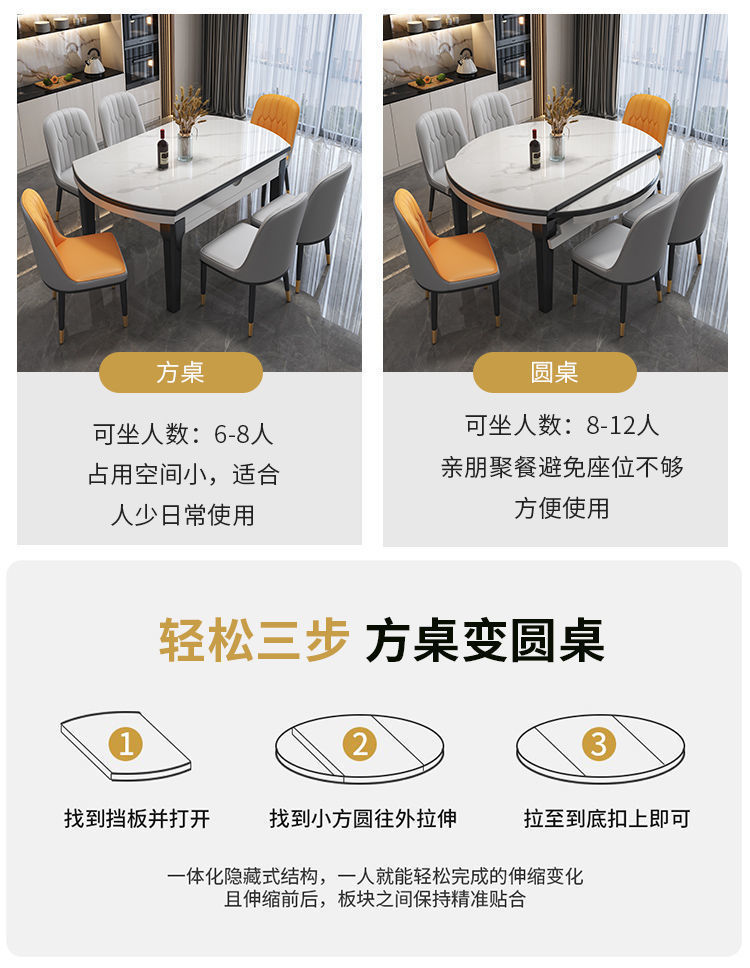 Meja Makan Rumah Tangga Kursi Meja Makan Kayu Solid Marmer Meja Makan Lipat Bisa Teleskopik