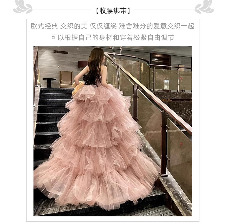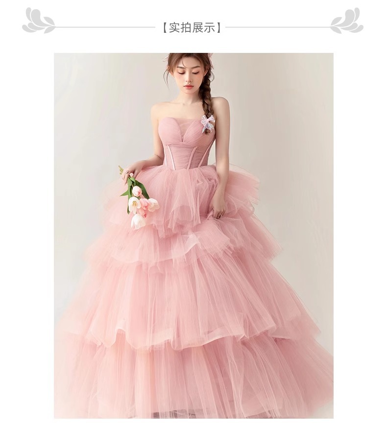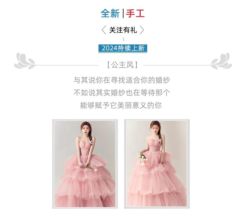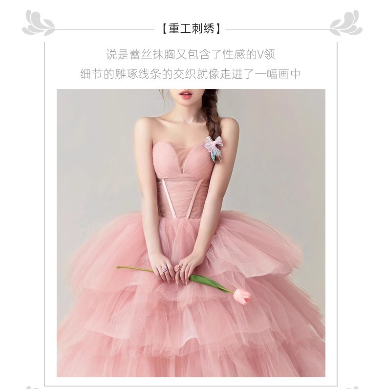 Gaun Pengantin Kecil Ringan Trap Model Prancis Gaun Malam Foto Upacara Ulang Tahun Orang dewasa Gaun Tutu Gaya Putri Merah Muda