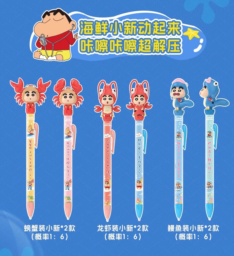 Brilliant Creative Crayon Xiaoxin Seafood Pen Blind Kotak Siswa Mengurai Kartun di Sekitar Kartun Kartun Lucu Pena Nesex